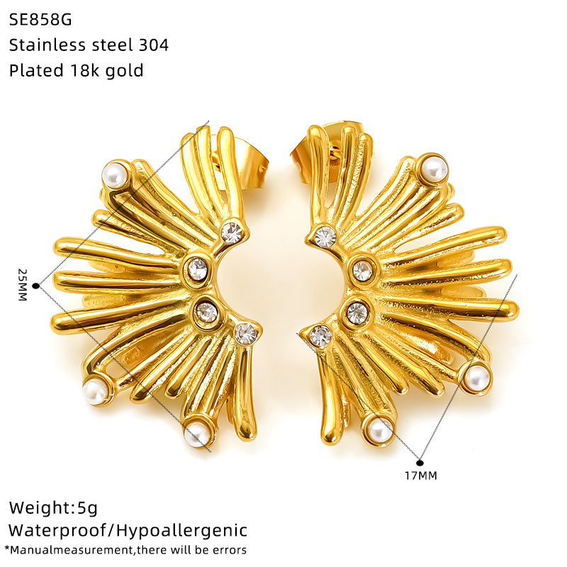 Boucle d'oreille de gaujon en acier inoxydable, Acier inoxydable 304, fleur, Placage, bijoux de mode & pour femme, doré, Vendu par paire