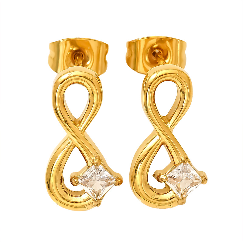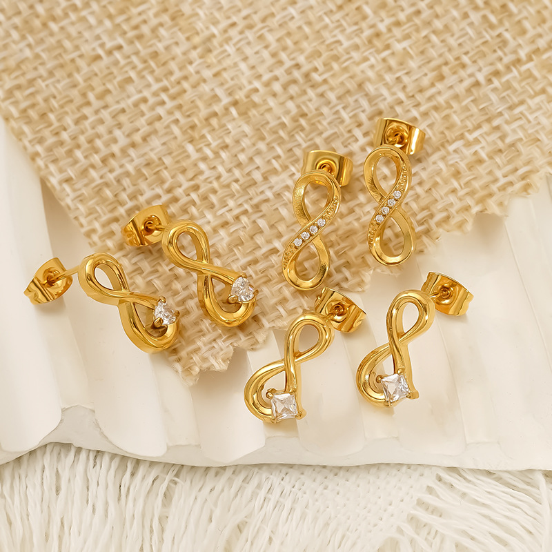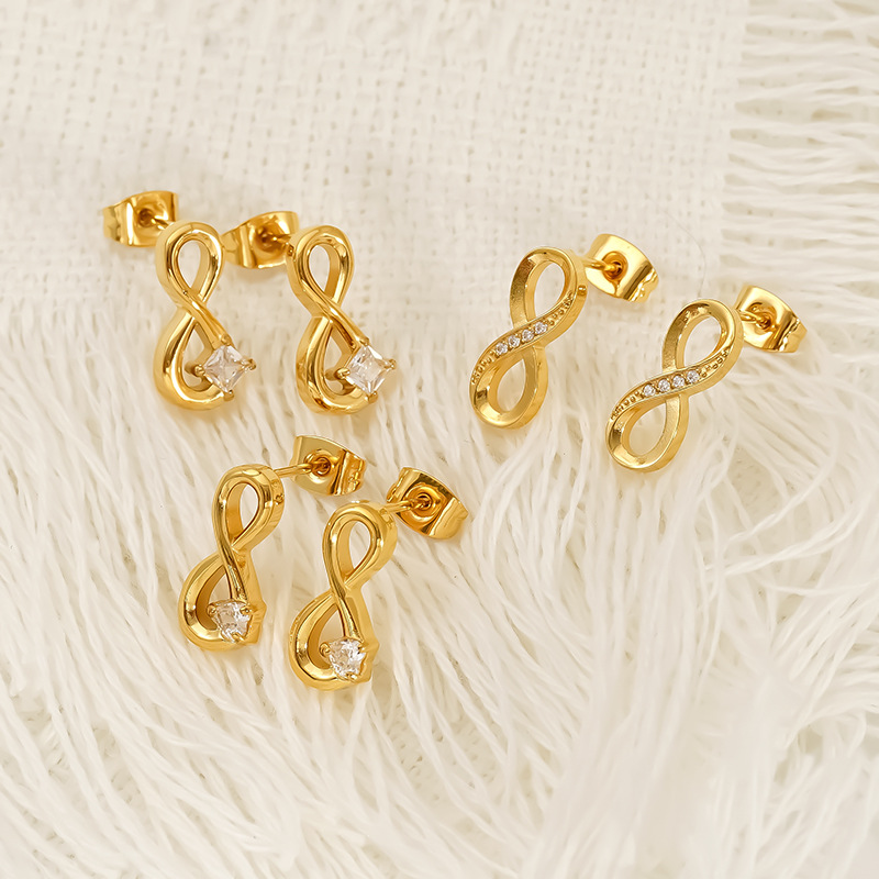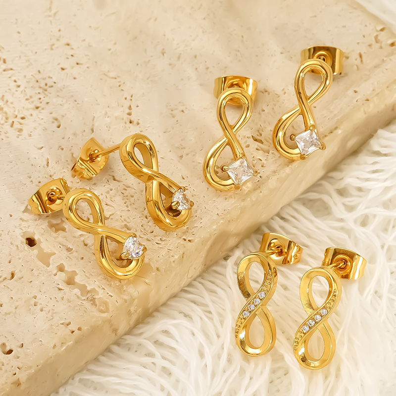 Boucle d'oreille de gaujon en acier inoxydable, Acier inoxydable 304, Plaqué or 18K, styles différents pour le choix & pavé de micro zircon & pour femme & creux, Vendu par paire