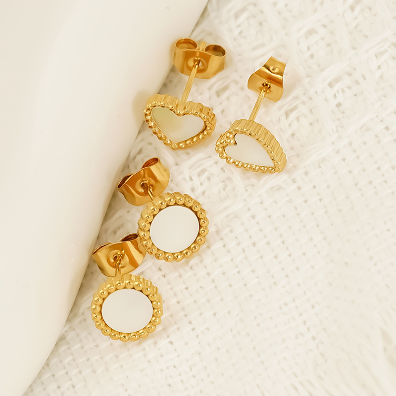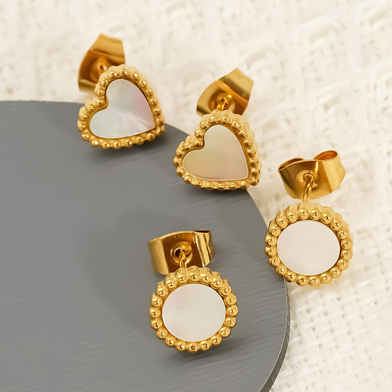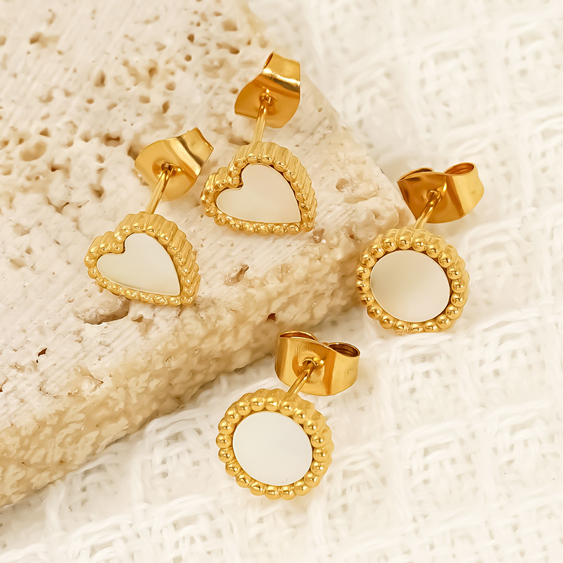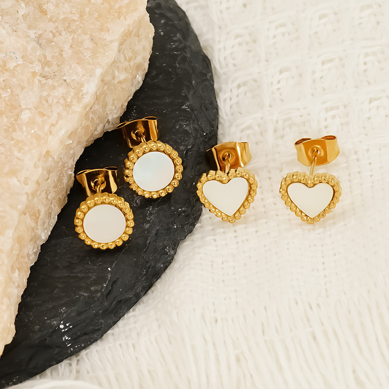 Boucle d'oreille de gaujon en acier inoxydable, Acier inoxydable 304, avec coquille d'ormeau, Plaqué or 18K, bijoux de mode & styles différents pour le choix & pour femme, Vendu par paire