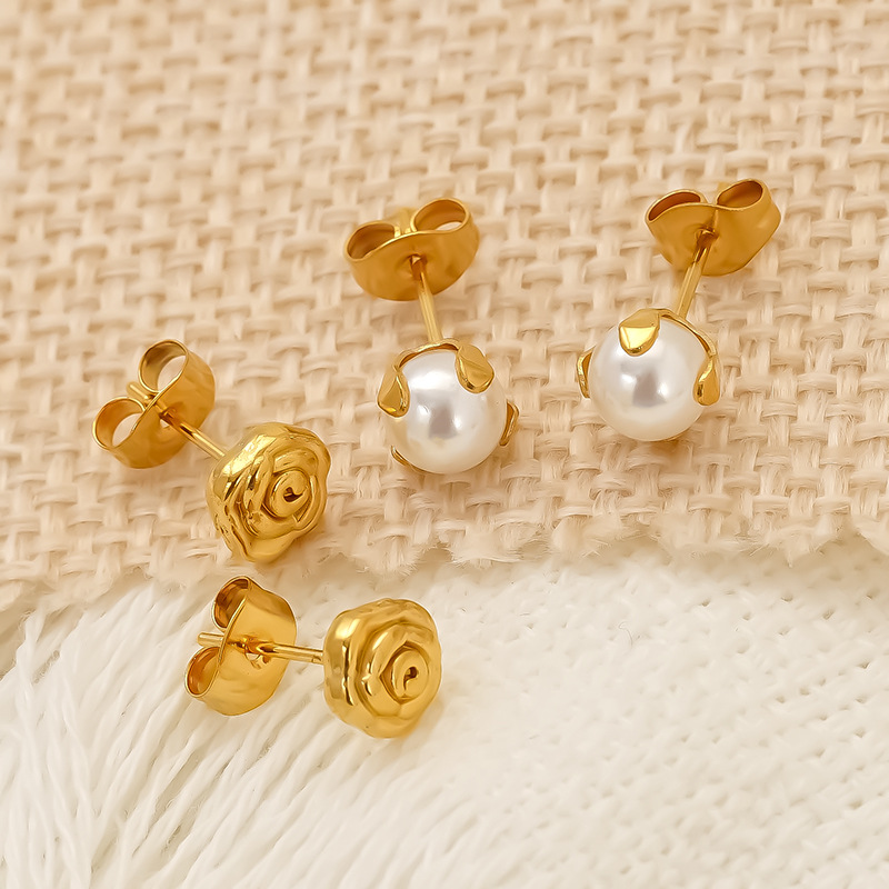 Boucle d'oreille de gaujon en acier inoxydable, Acier inoxydable 304, fleur, Placage, bijoux de mode & pour femme, doré, Vendu par paire