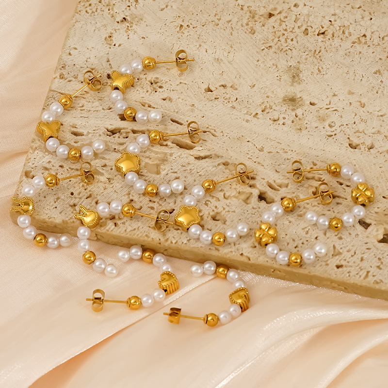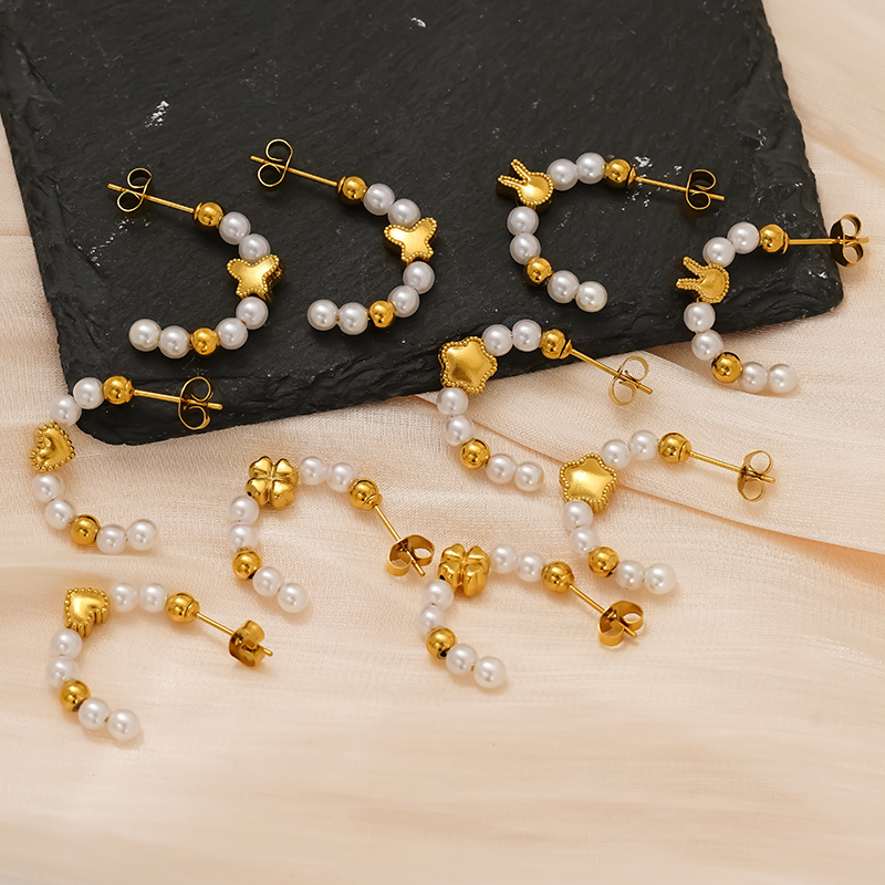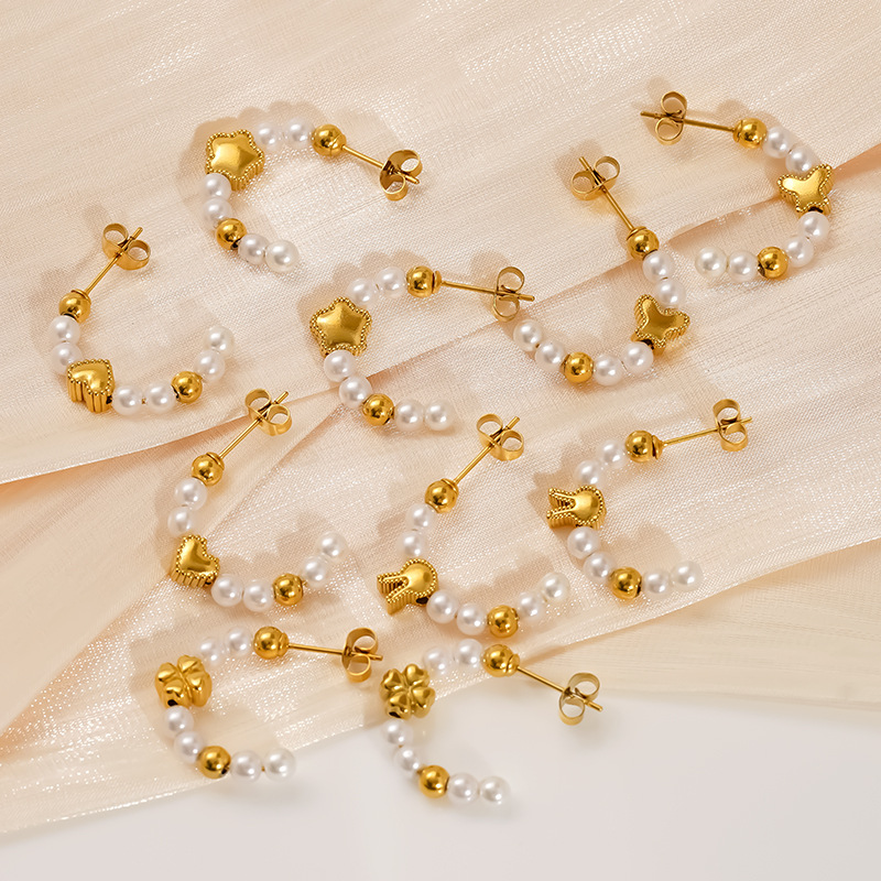 Boucle d'oreille de gaujon en acier inoxydable, Acier inoxydable 304, avec perle de plastique, Plaqué or 18K, bijoux de mode & styles différents pour le choix & pour femme, Vendu par paire