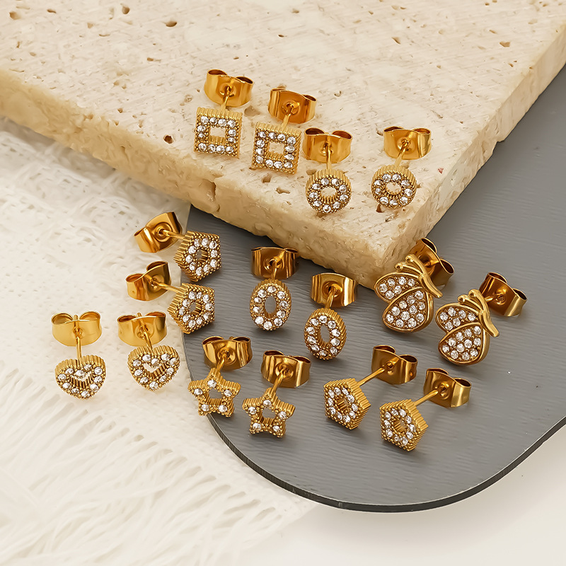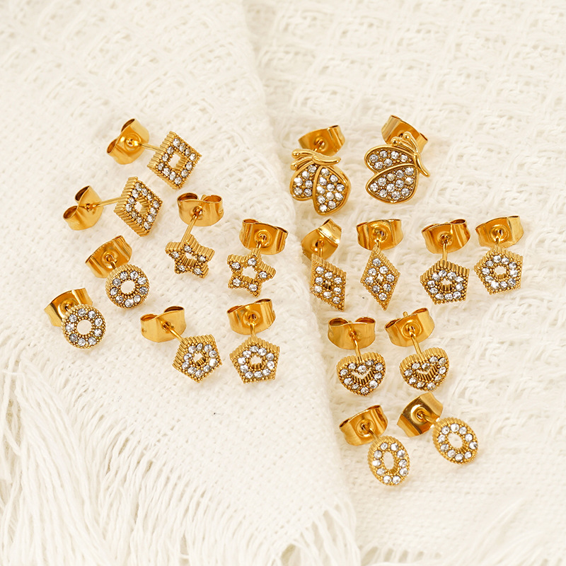 Boucle d'oreille de gaujon en acier inoxydable, Acier inoxydable 304, Plaqué or 18K, styles différents pour le choix & pavé de micro zircon & pour femme, Vendu par paire