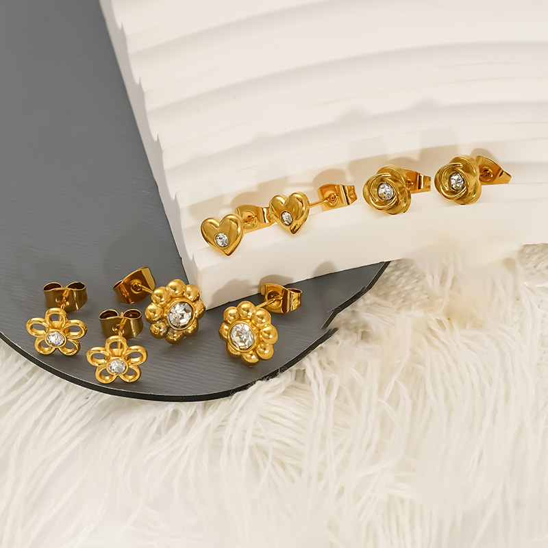 Boucle d'oreille de gaujon en acier inoxydable, Acier inoxydable 304, fleur, Placage, bijoux de mode & pour femme, doré, Vendu par paire