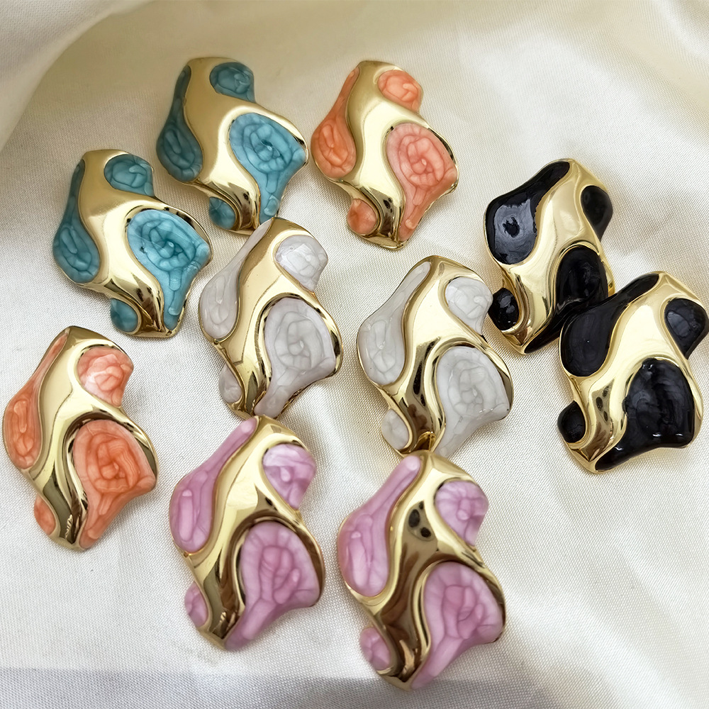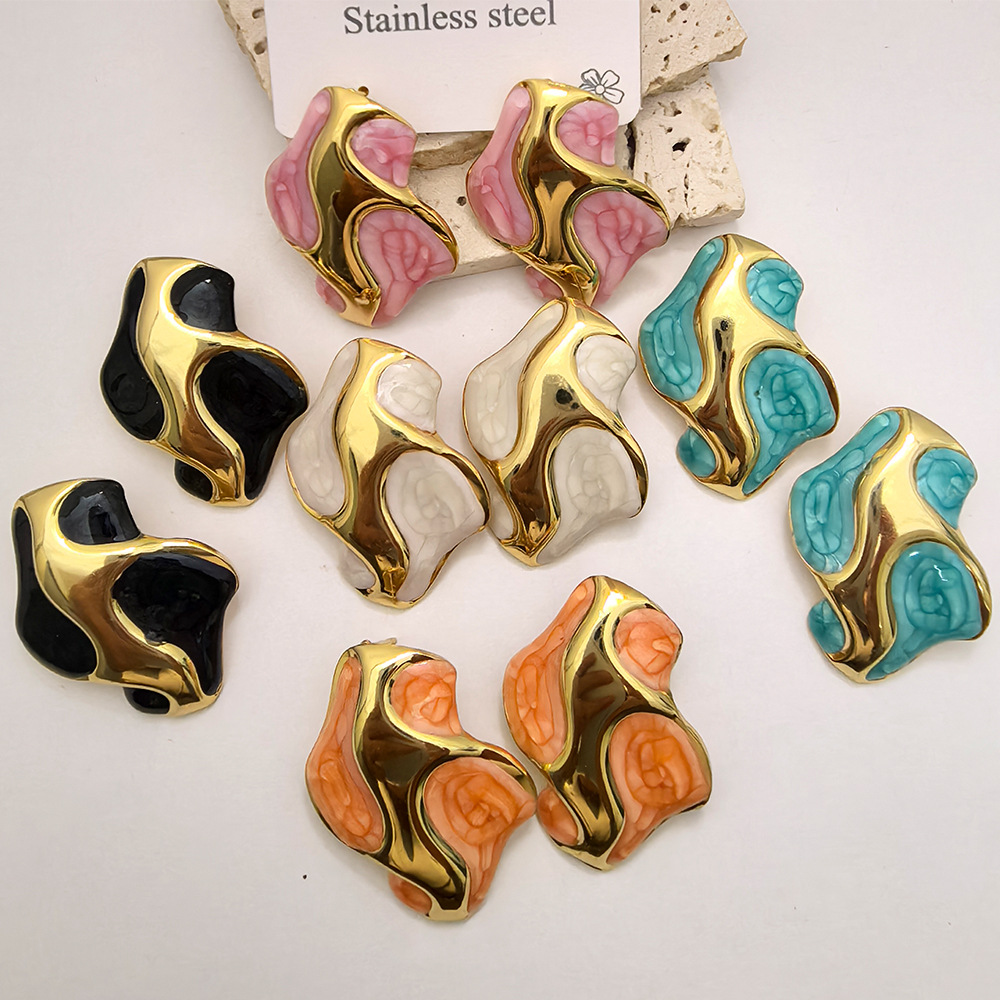 Boucle d'oreille de gaujon en acier inoxydable, Acier inoxydable 304, Plaqué or 18K, styles différents pour le choix & pour femme & émail, plus de couleurs à choisir, Vendu par paire