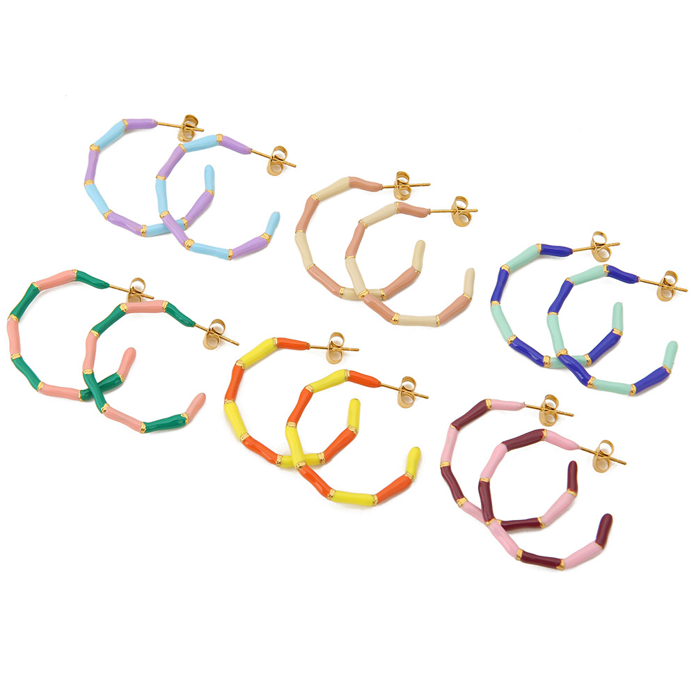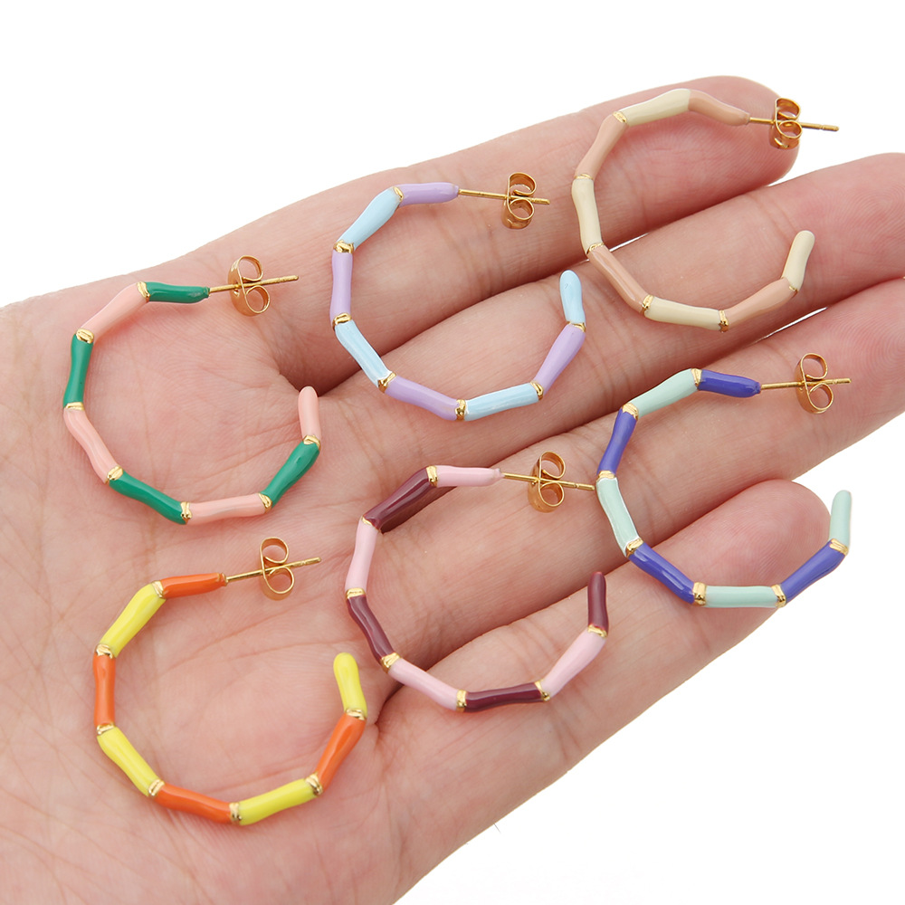 Boucle d'oreille de gaujon en acier inoxydable, Acier inoxydable 304, Placage de couleur d'or, bijoux de mode & pour femme & émail, plus de couleurs à choisir, Vendu par paire
