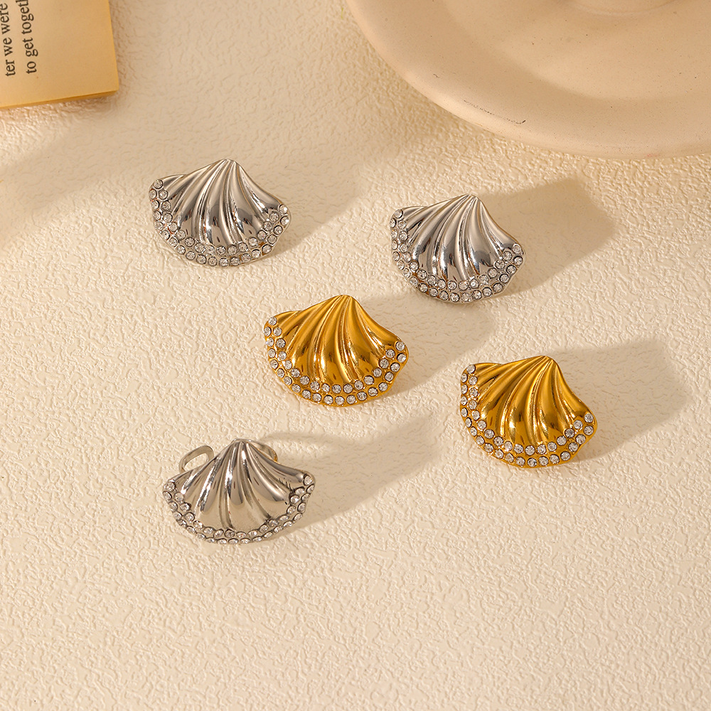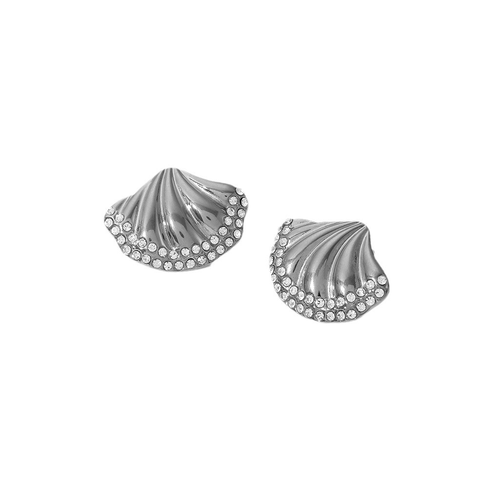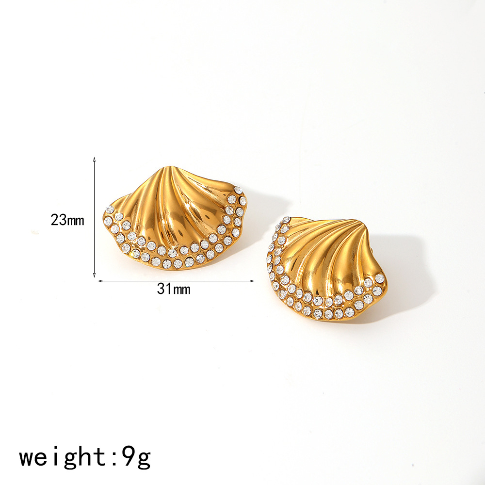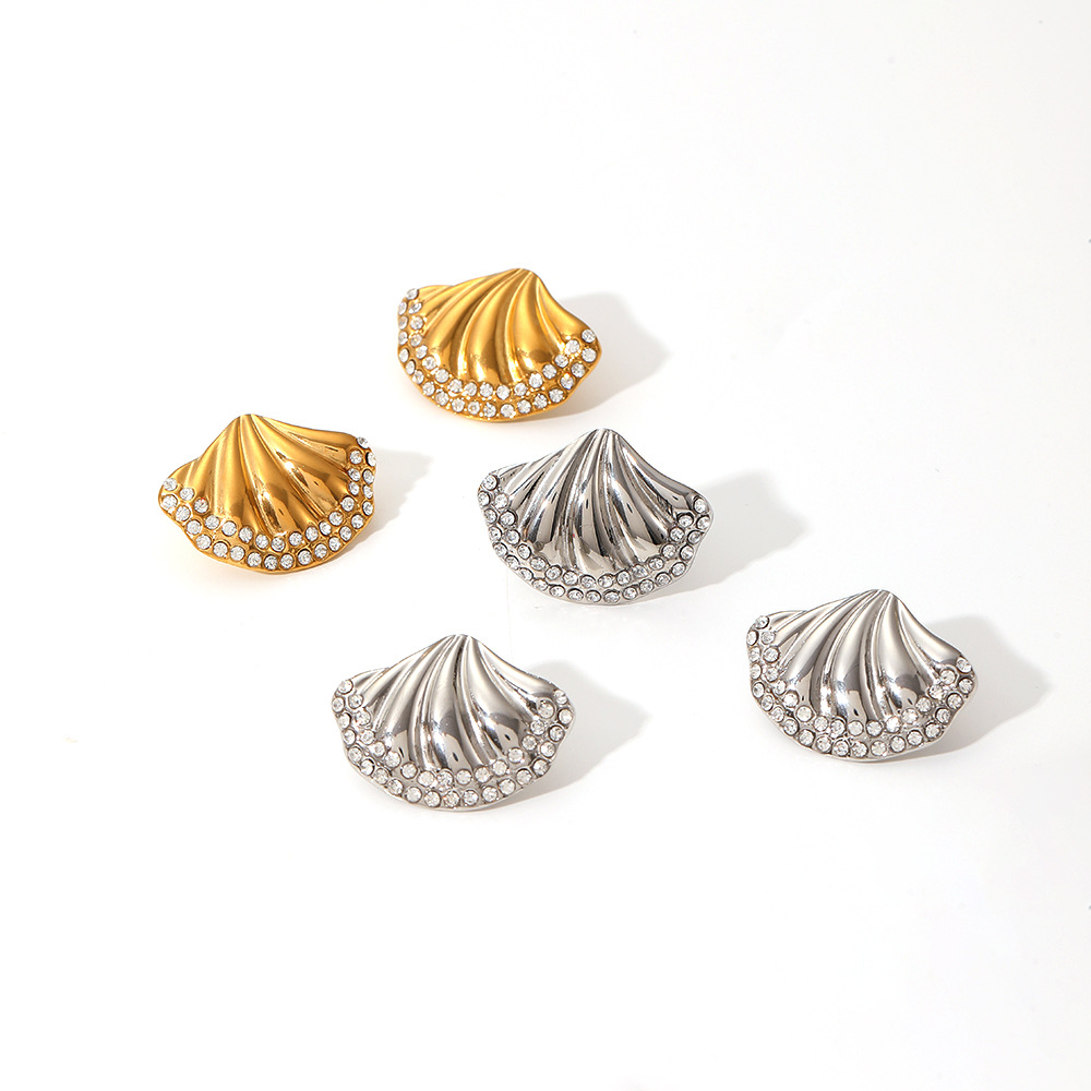 Boucle d'oreille de gaujon en acier inoxydable, Acier inoxydable 304, coquille, Placage, bijoux de mode & avec strass, plus de couleurs à choisir, Vendu par paire