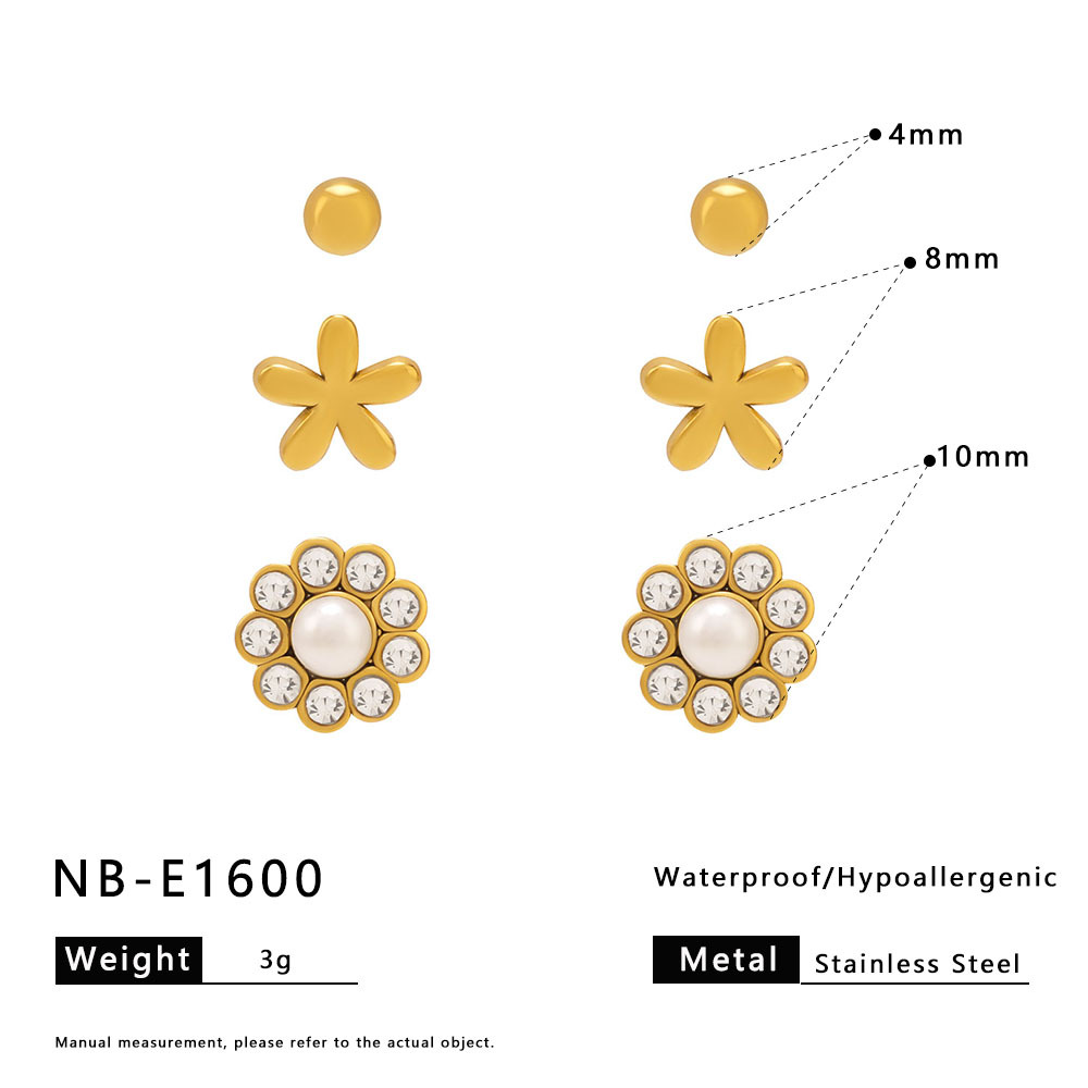 Boucle d'oreille de gaujon en acier inoxydable, Acier inoxydable 304, avec perle de plastique, Plaqué or 18K, trois pièces & styles différents pour le choix & pavé de micro zircon & pour femme, Vendu par fixé