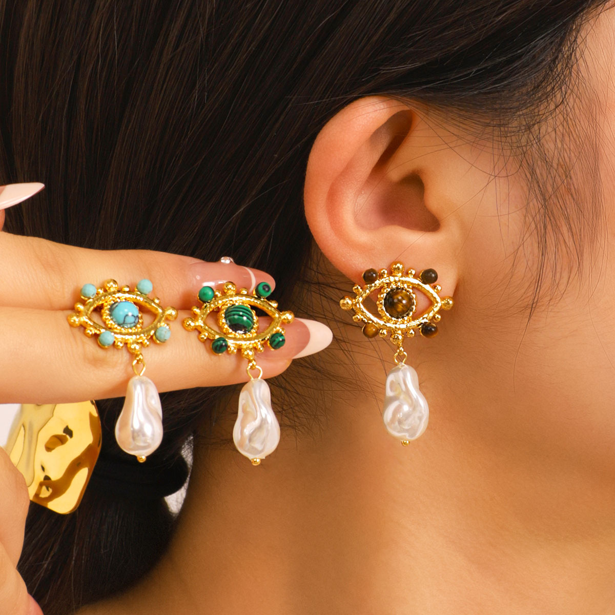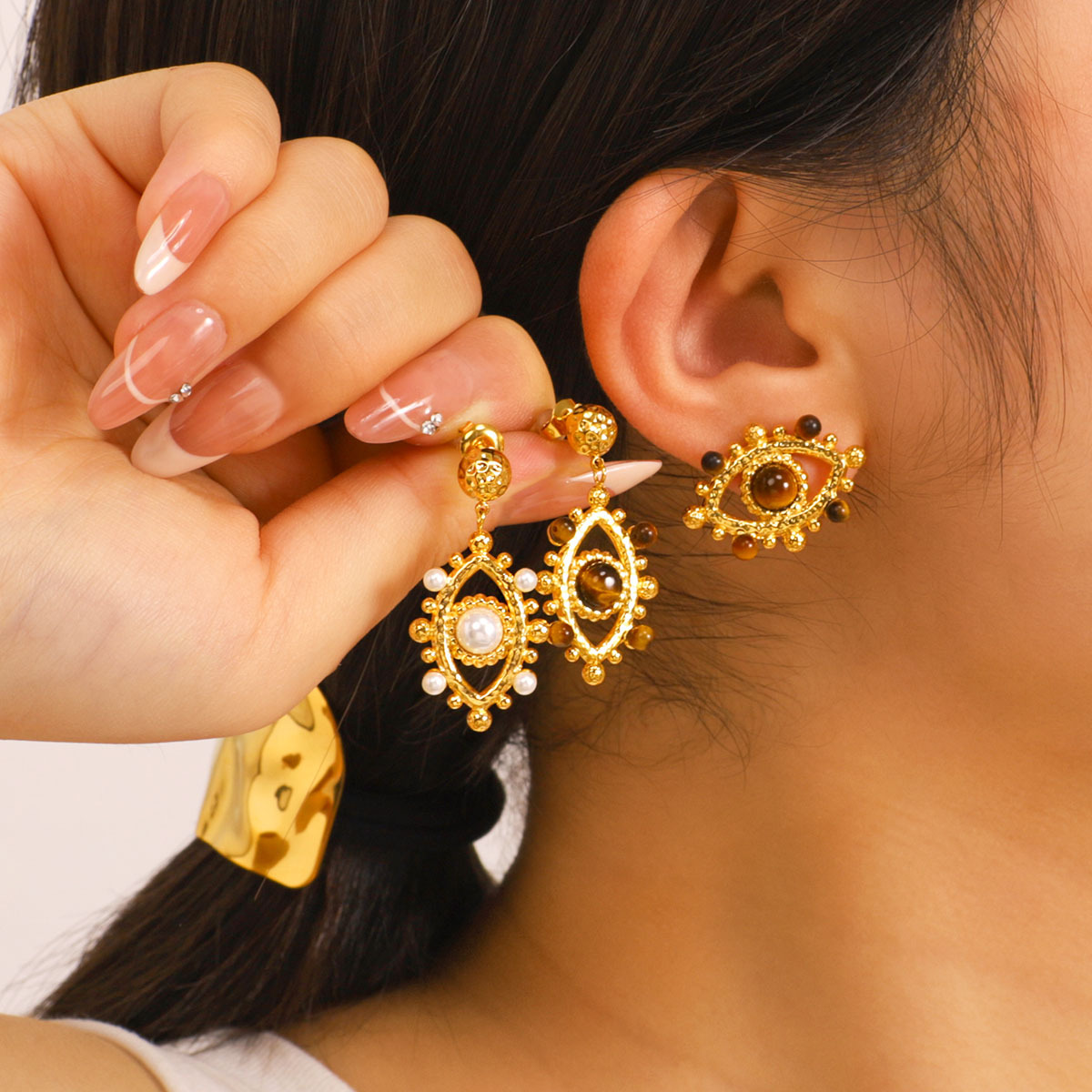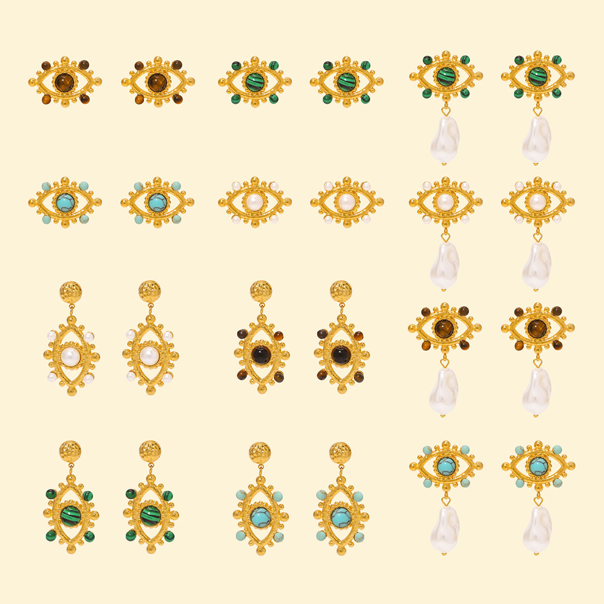 Boucle d'oreille de gaujon en acier inoxydable, Acier inoxydable 304, avec Gemme synthétique & perle de plastique, Plaqué or 18K, différents matériaux pour le choix & styles différents pour le choix & pour femme & creux, Vendu par paire