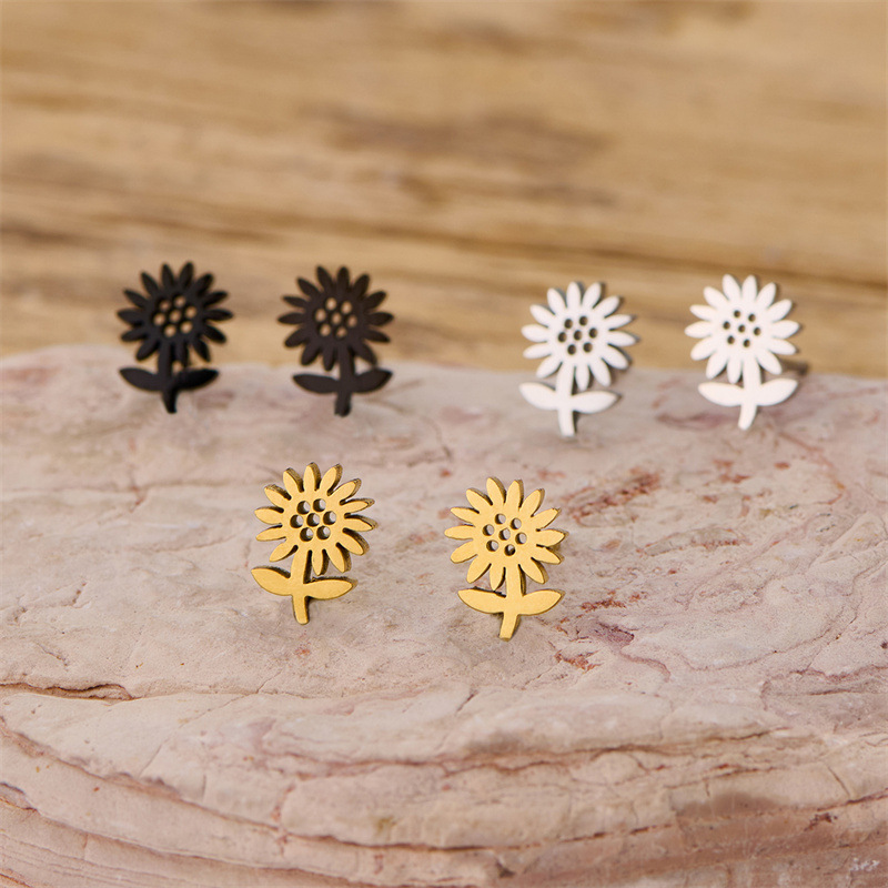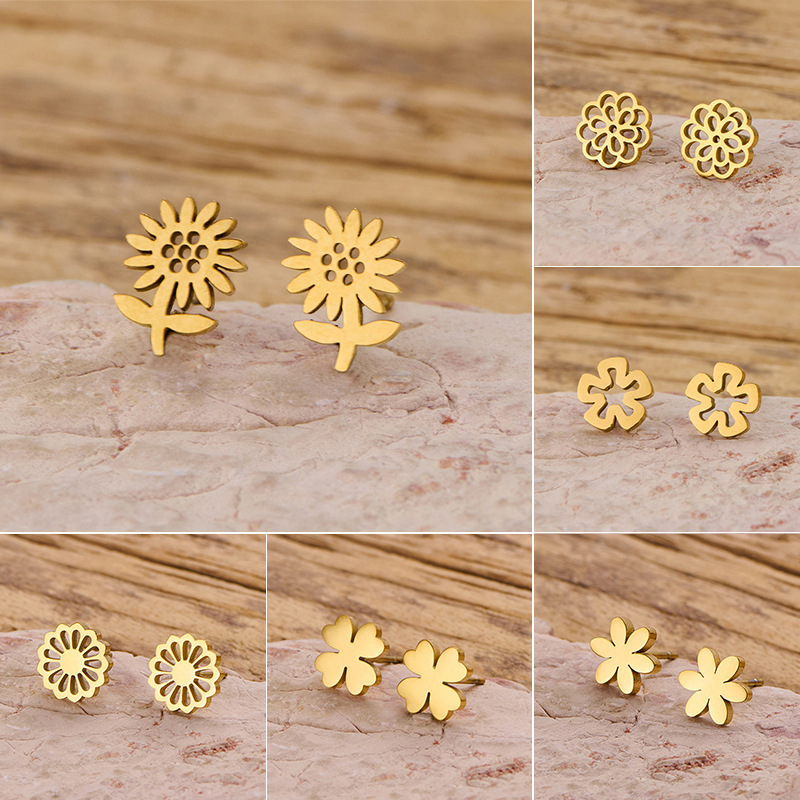 Boucle d'oreille de gaujon en acier inoxydable, Acier inoxydable 304, fleur, Placage, bijoux de mode & pour femme, doré, Vendu par paire