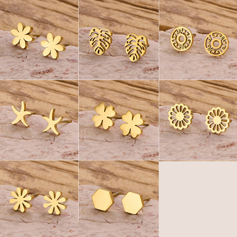 Boucle d'oreille de gaujon en acier inoxydable, Acier inoxydable 304, fleur, Placage, bijoux de mode & pour femme, doré, Vendu par paire