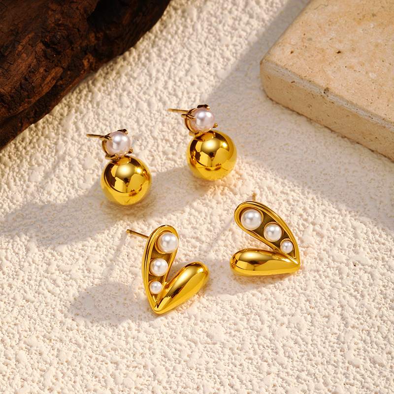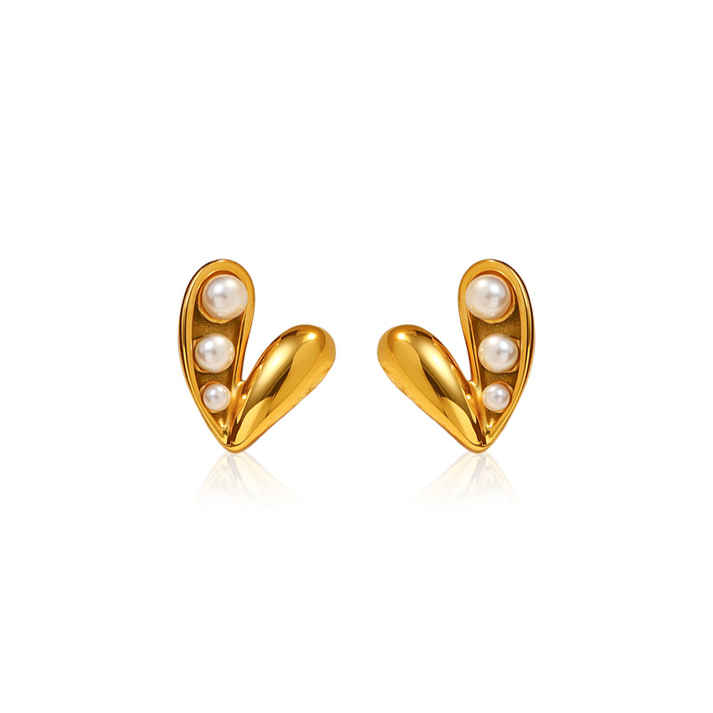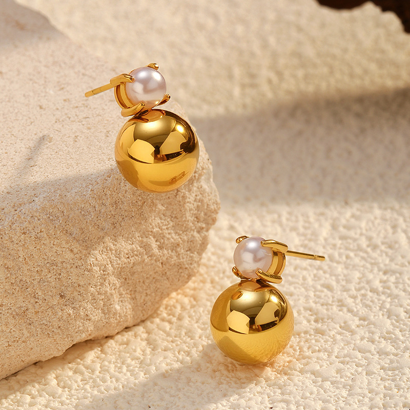 Boucle d'oreille de gaujon en acier inoxydable, Acier inoxydable 304, avec perle de plastique, Plaqué or 18K, bijoux de mode & styles différents pour le choix & pour femme, Vendu par paire