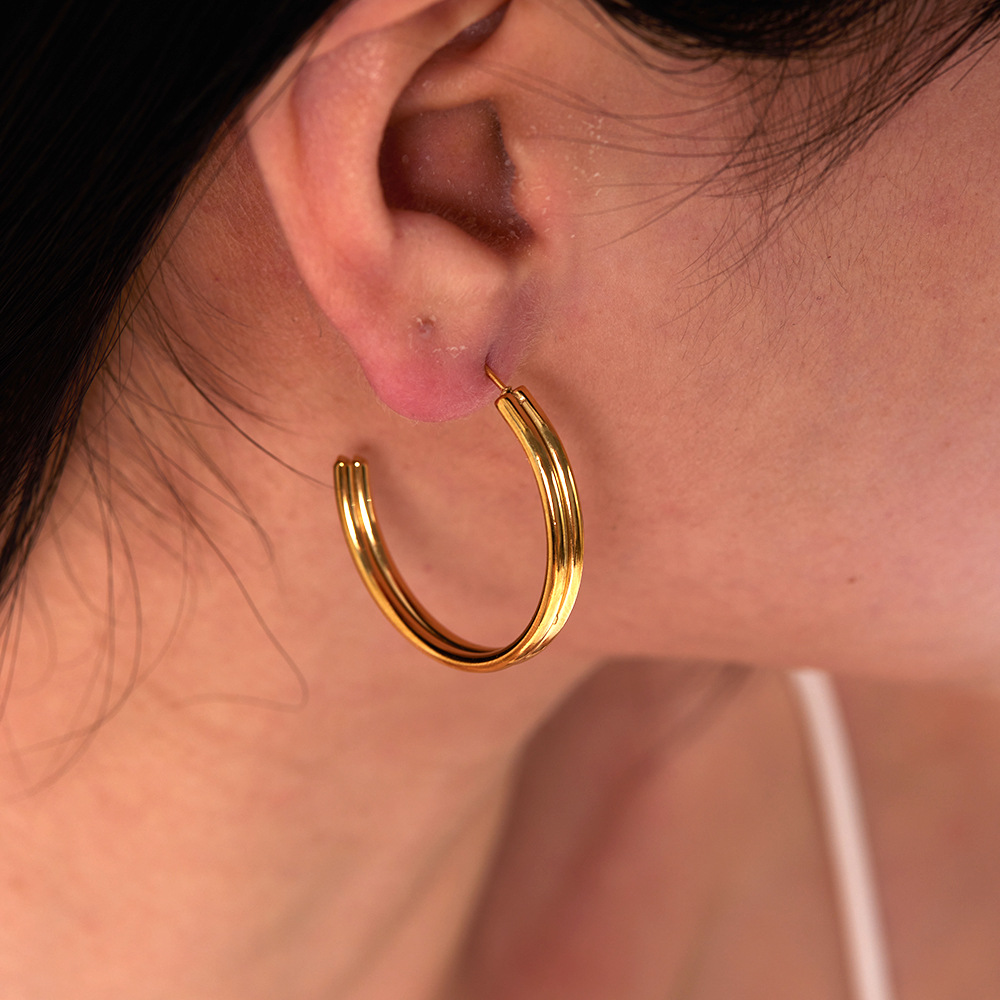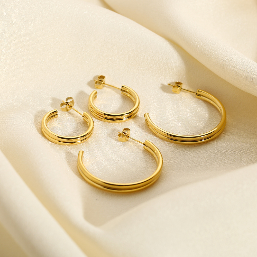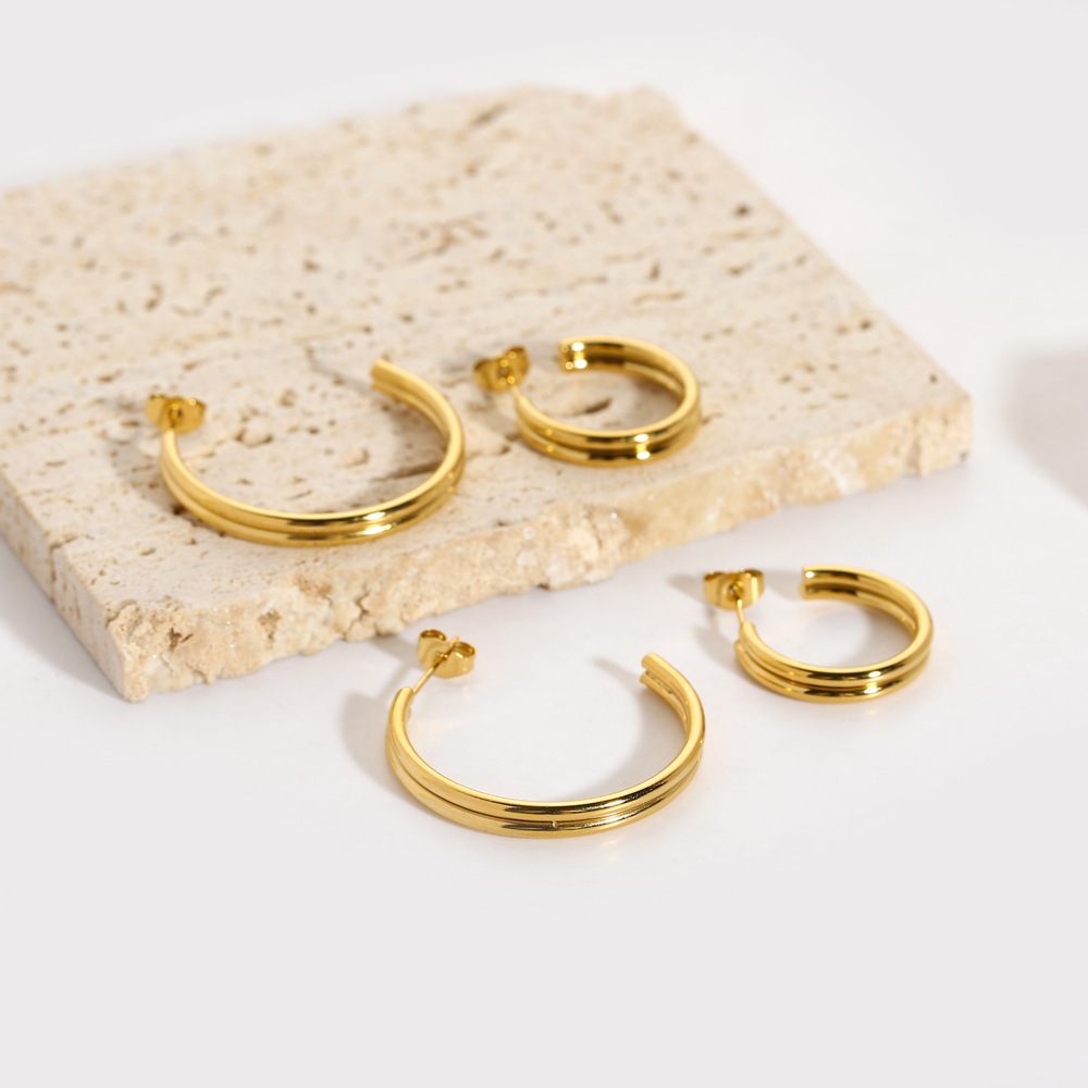 Boucle d'oreille de gaujon en acier inoxydable, Acier inoxydable 304, Plaqué or 18K, Double couche & normes différentes pour le choix & pour femme, Vendu par paire