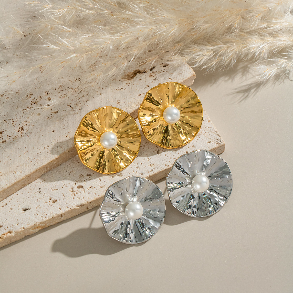 Boucle d'oreille de gaujon en acier inoxydable, Acier inoxydable 304, fleur, Placage, bijoux de mode & pour femme, doré, Vendu par paire