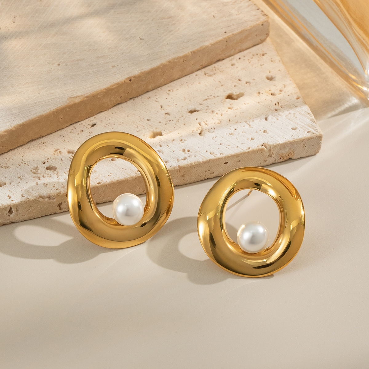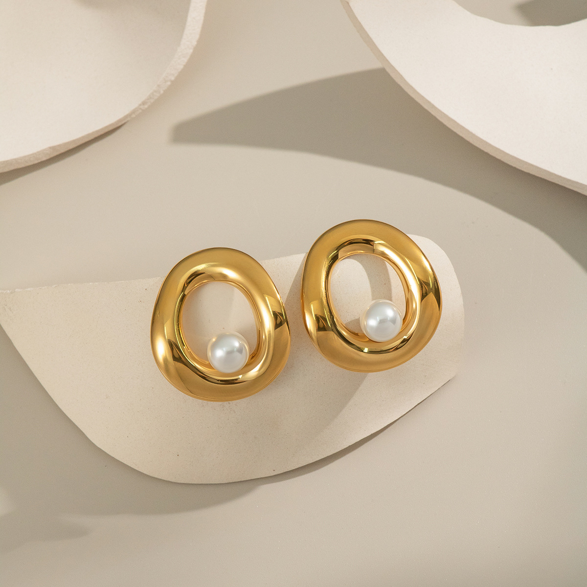 Boucle d'oreille de gaujon en acier inoxydable, Acier inoxydable 304, avec perle de plastique, Placage de couleur d'or, bijoux de mode & creux, plus de couleurs à choisir, Vendu par paire
