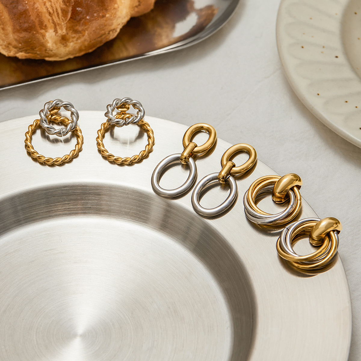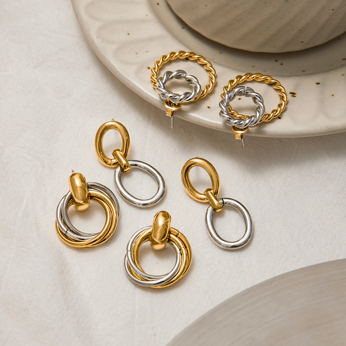 Boucle d'oreille de gaujon en acier inoxydable, Acier inoxydable 304, Placage, styles différents pour le choix & pour femme & deux tons & creux, Vendu par paire