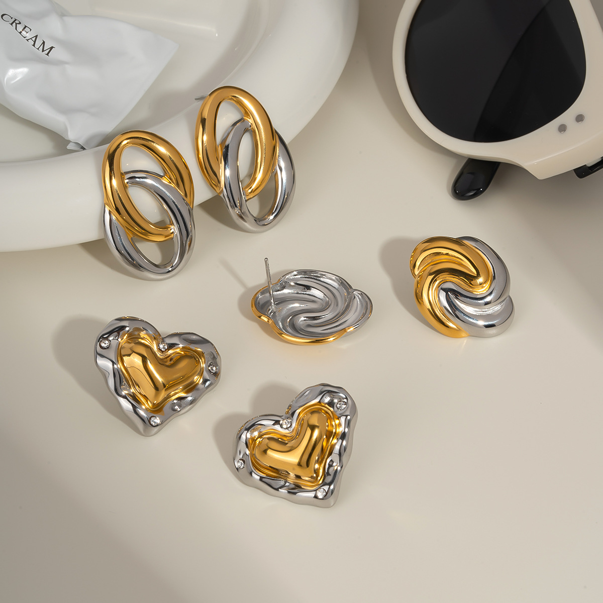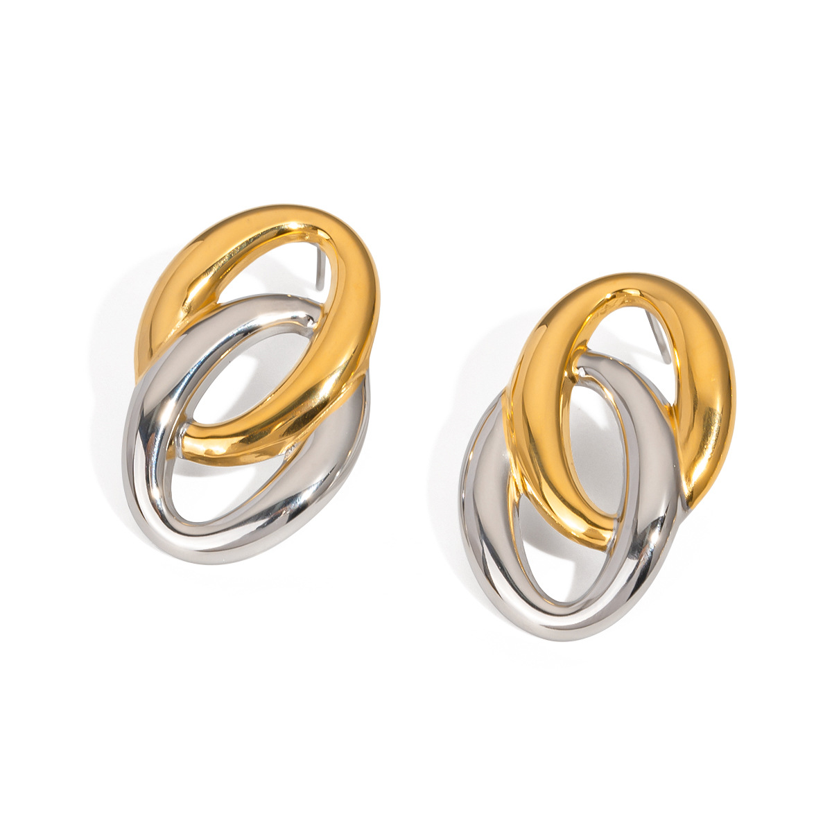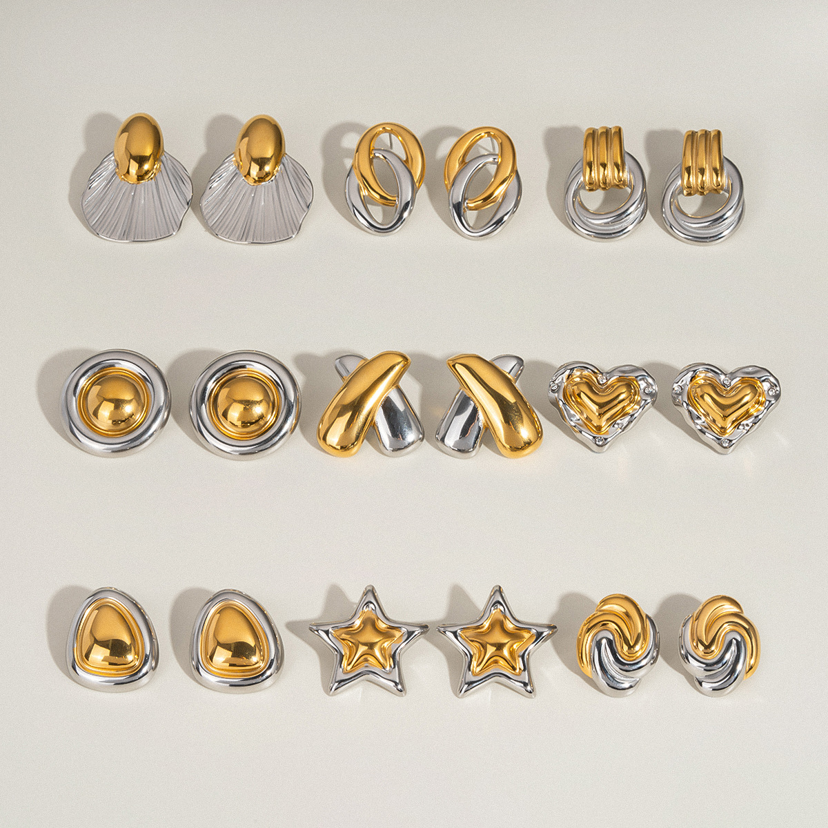 Boucle d'oreille de gaujon en acier inoxydable, Acier inoxydable 304, Placage de couleur d'or, bijoux de mode, plus de couleurs à choisir, 100x100x15mm, Vendu par paire