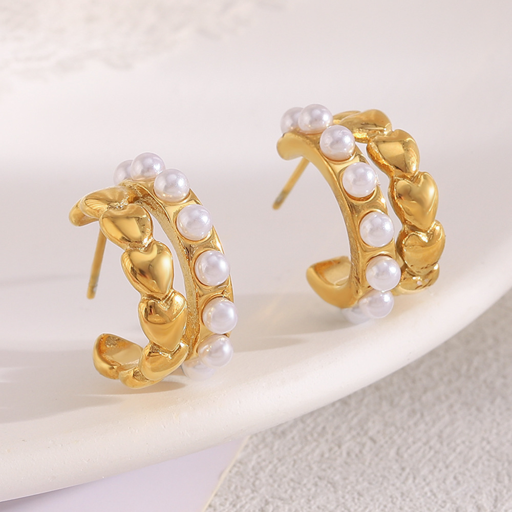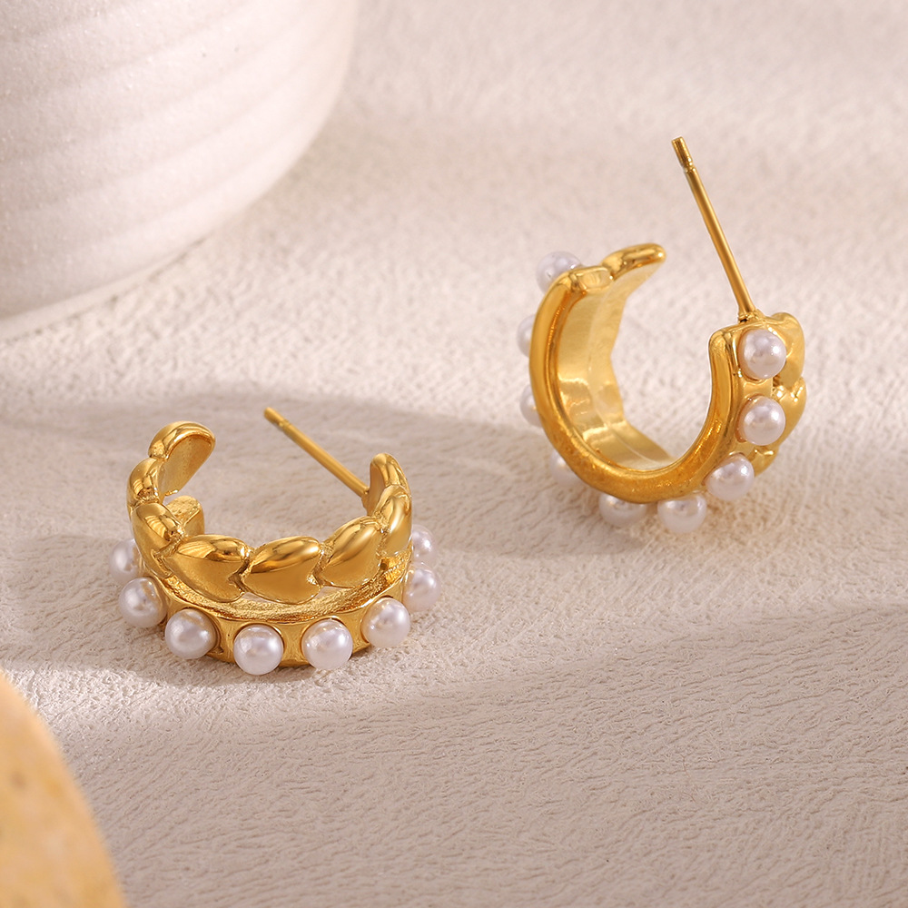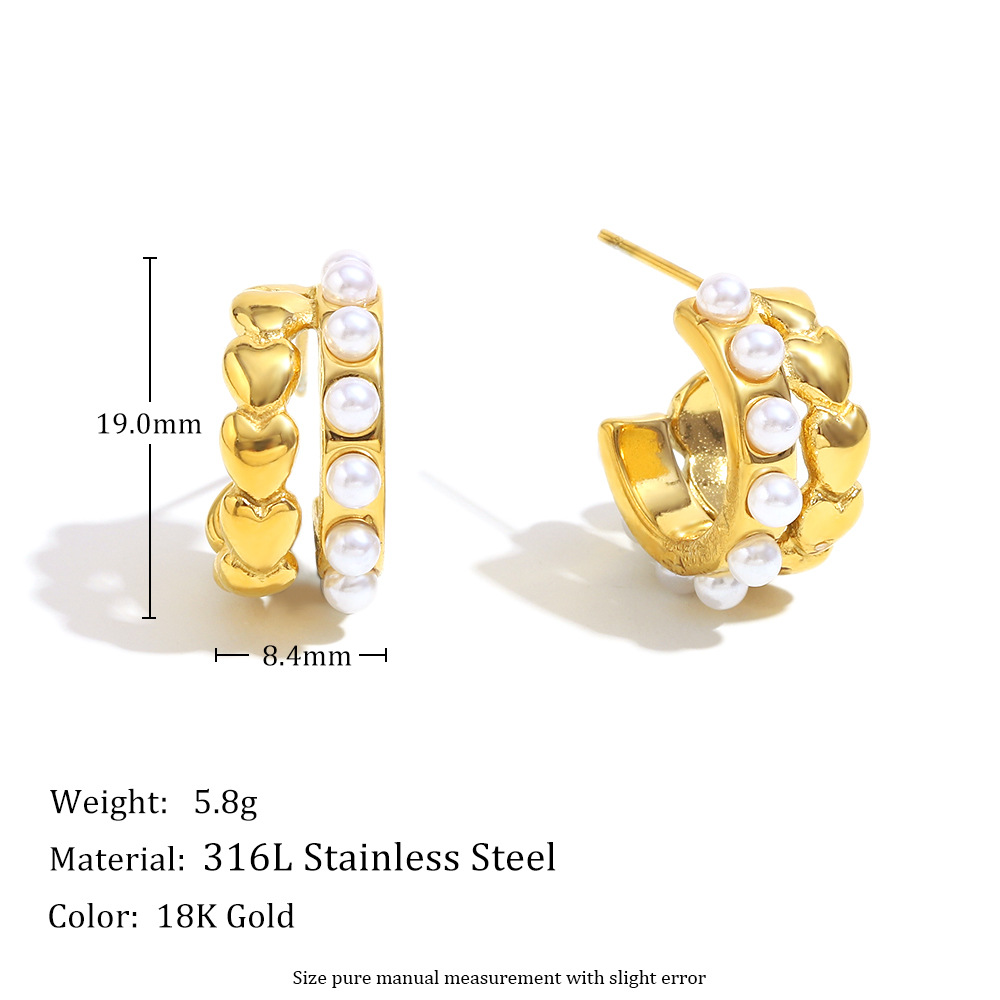 Boucle d'oreille de gaujon en acier inoxydable, Acier inoxydable 304, avec perle de plastique, Placage de couleur d'or, bijoux de mode, doré, Vendu par paire