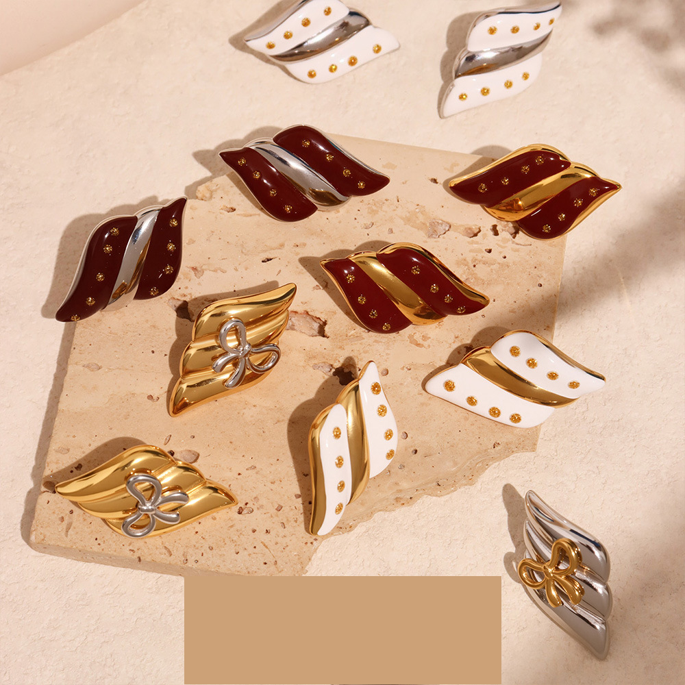 1:F346-gold bow earrings2:F346-steel color bow earrings3:F346-gold white glaze earrings4:F346-steel color white glaze earrings5:F346-gold red glaze earrings6:F346-steel color red glaze earrings7:F1070-steel color earrings8:F1070-gold earrings9:F1070-gold earrings10:F1568-steel white earrings11:F1568-steel red earrings12:F1568-gold and white earrings13:F1568-gold red earrings