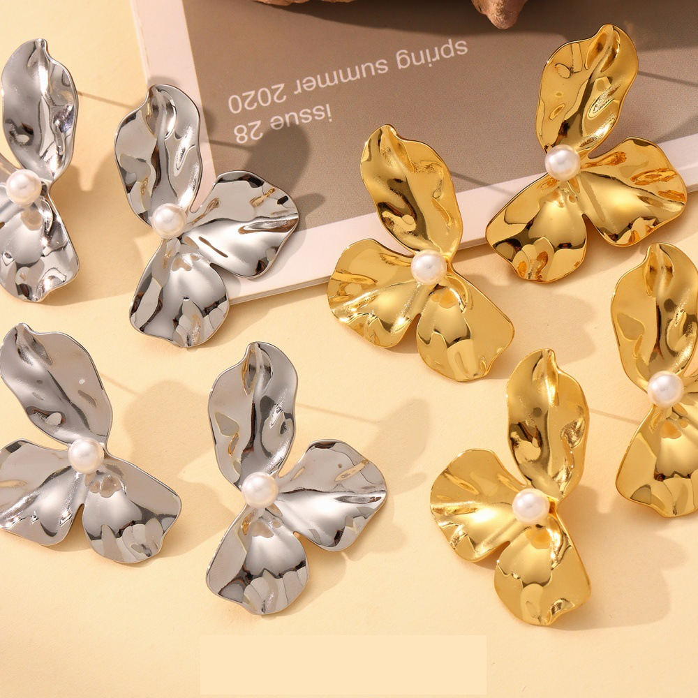 Boucle d'oreille de gaujon en acier inoxydable, Acier inoxydable 304, fleur, Placage, bijoux de mode & pour femme, doré, Vendu par paire