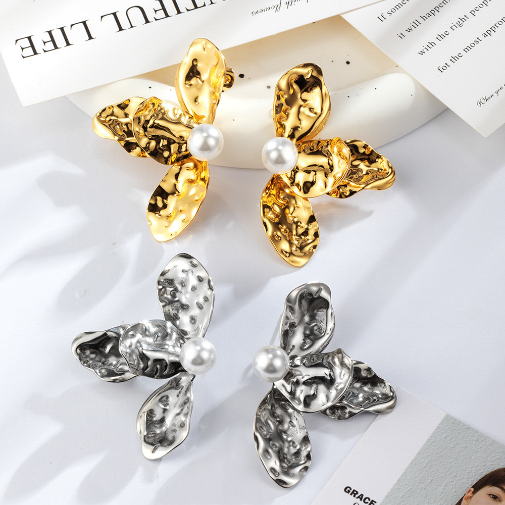 Boucle d'oreille de gaujon en acier inoxydable, Acier inoxydable 304, avec perle de plastique, Pétales, Placage, bijoux de mode, plus de couleurs à choisir, Vendu par paire