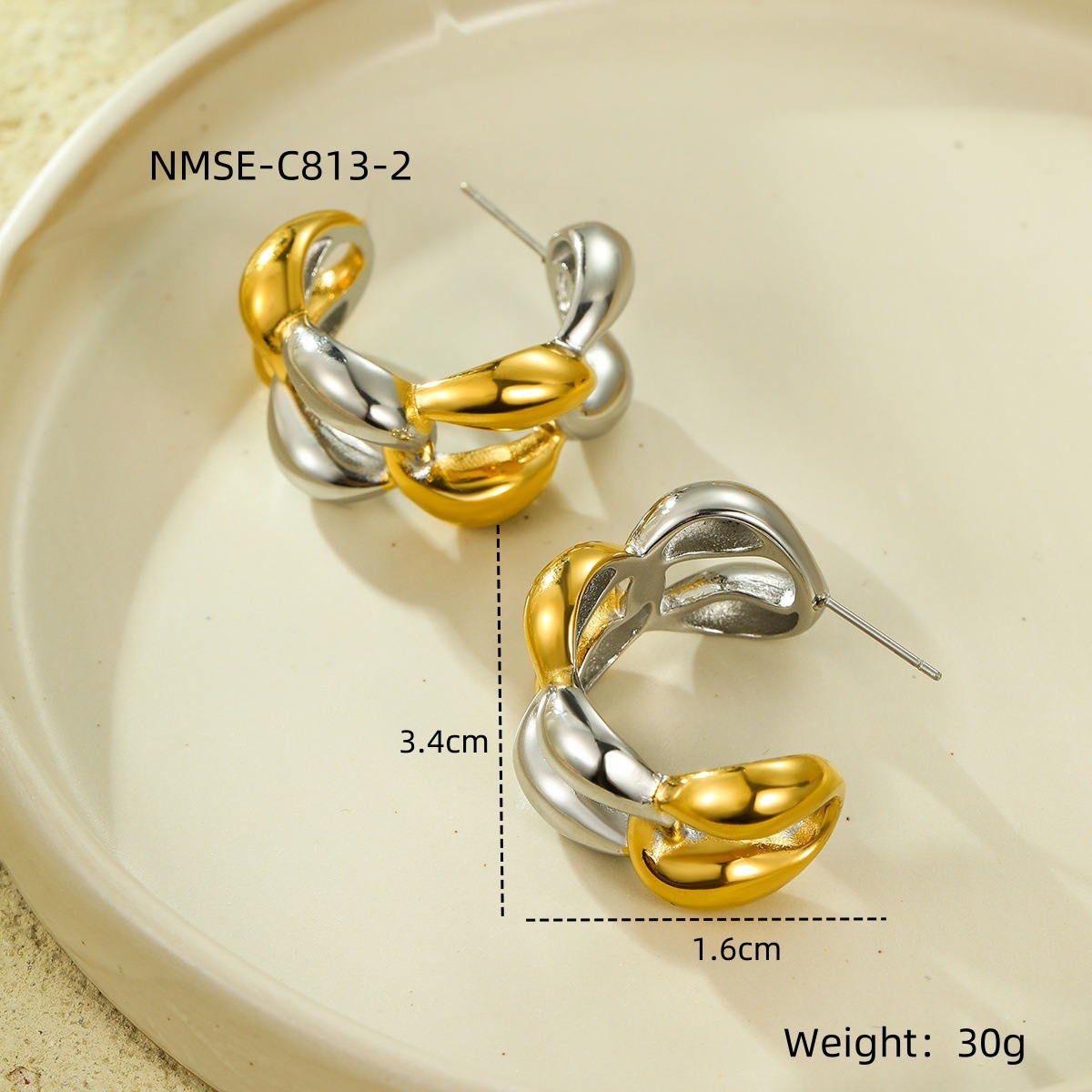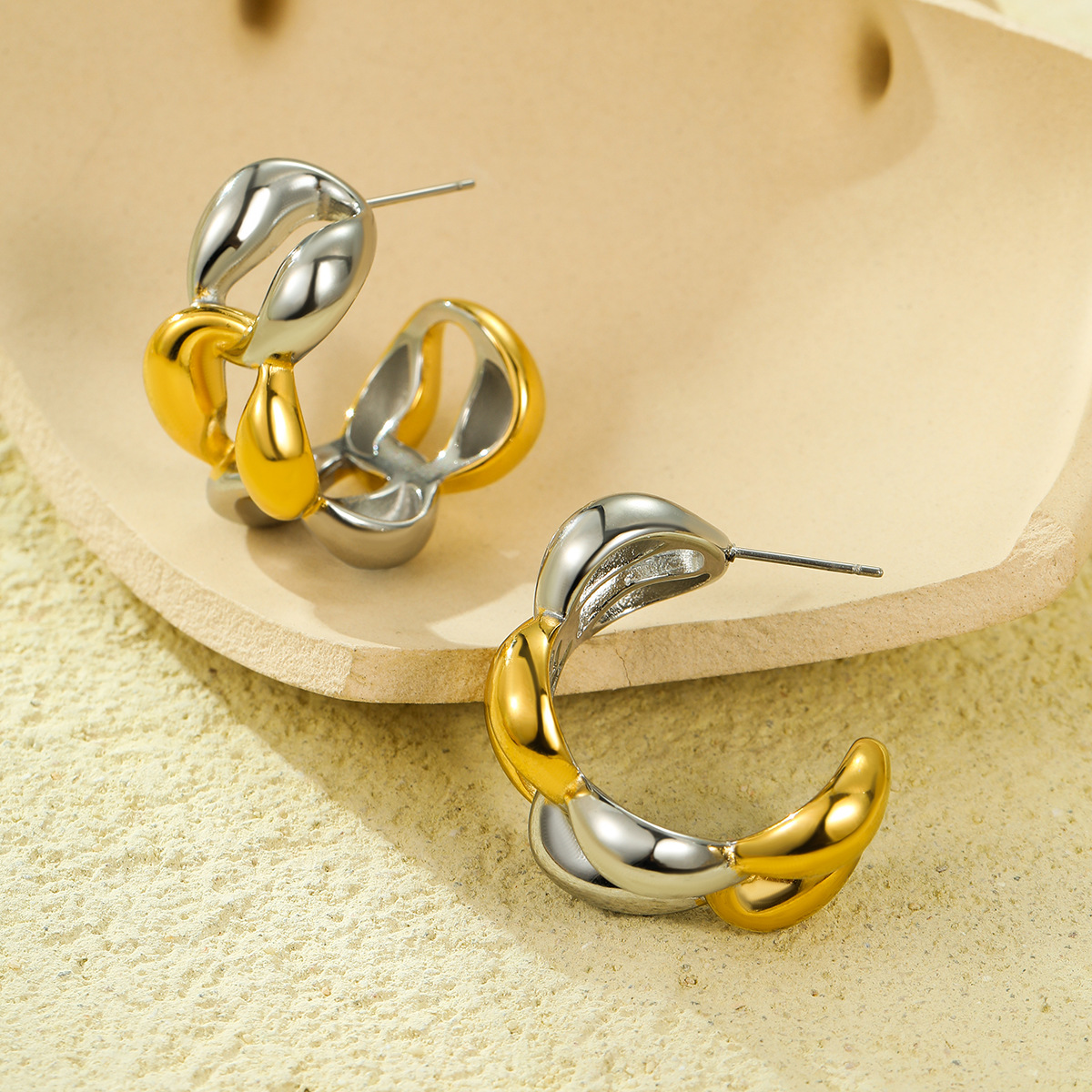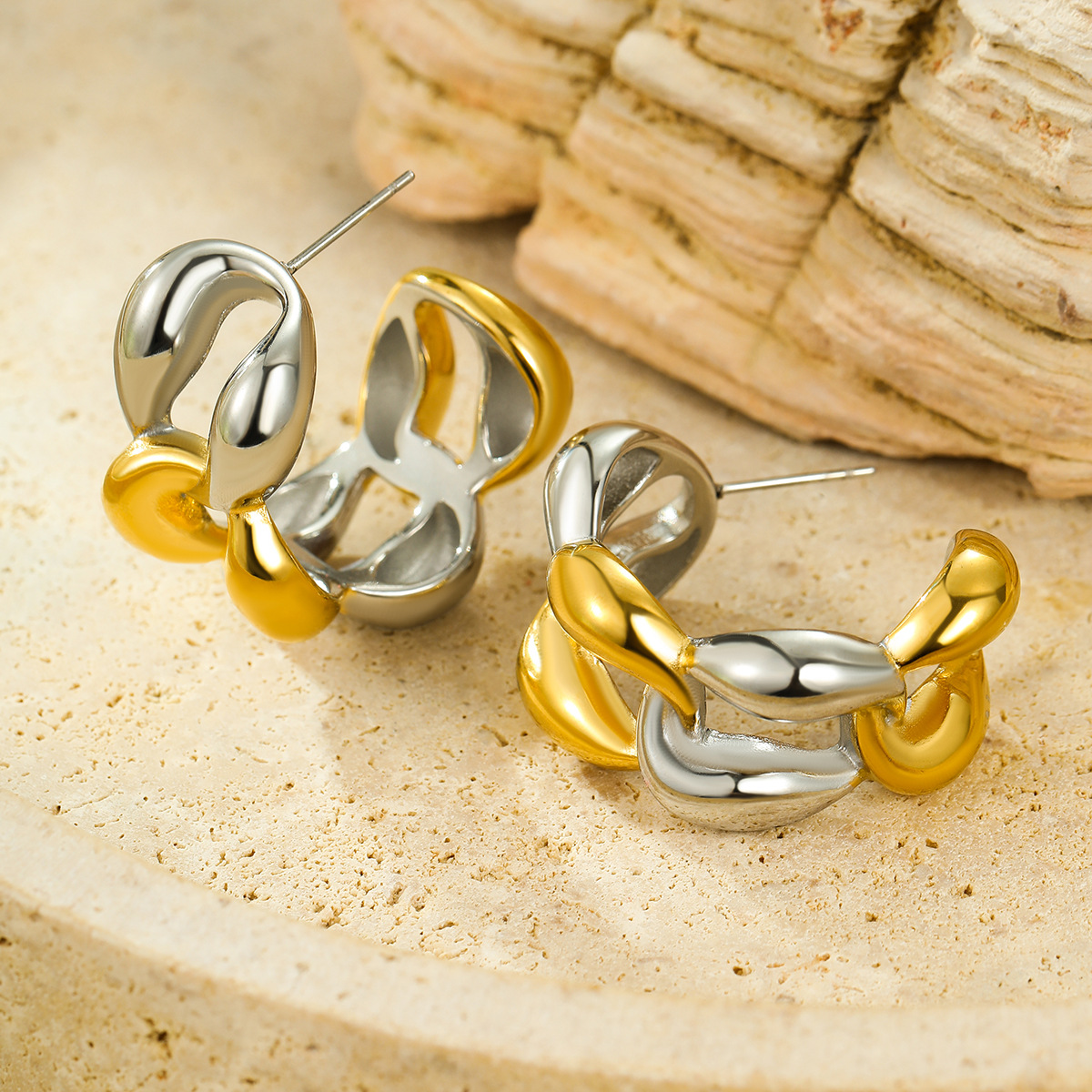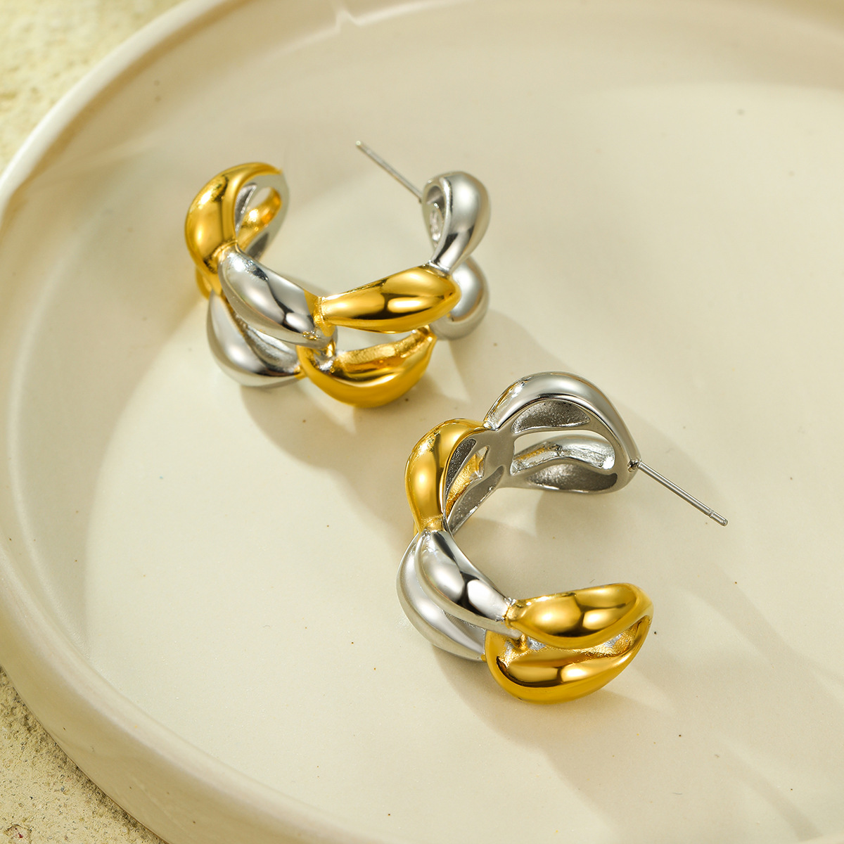Boucle d'oreille de gaujon en acier inoxydable, Acier inoxydable 304, Placage, pour femme & deux tons & creux, Vendu par paire