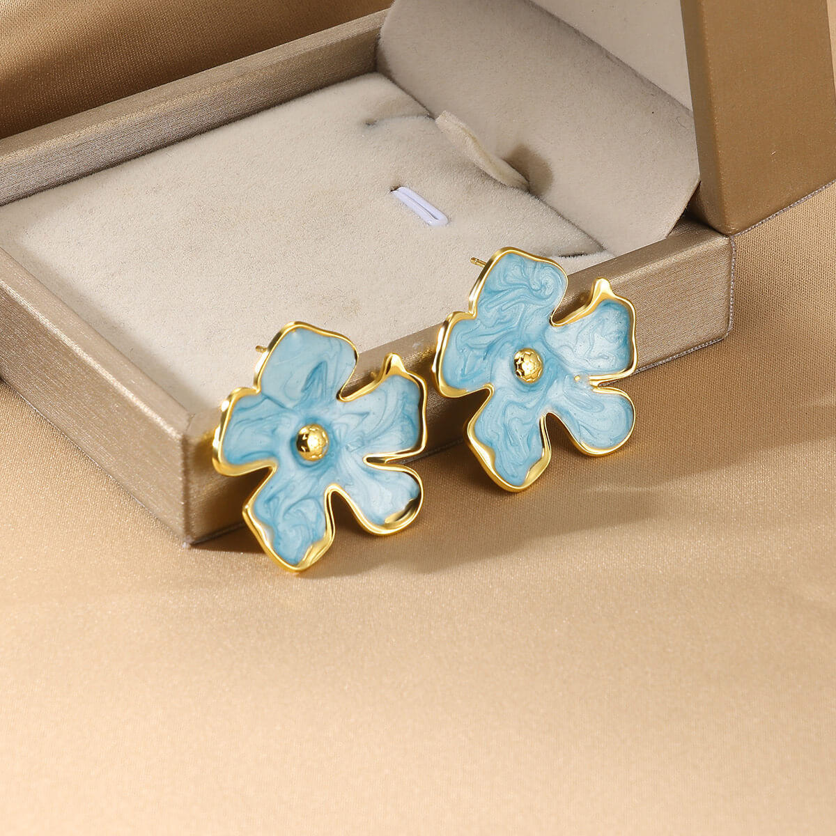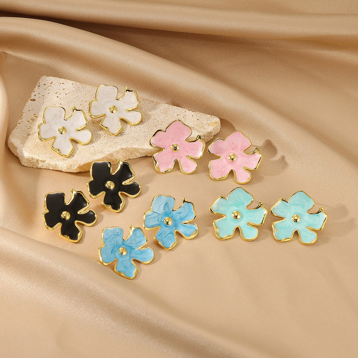 Boucle d'oreille de gaujon en acier inoxydable, Acier inoxydable 304, fleur, Placage de couleur d'or, bijoux de mode & pour femme & émail, plus de couleurs à choisir, Vendu par paire