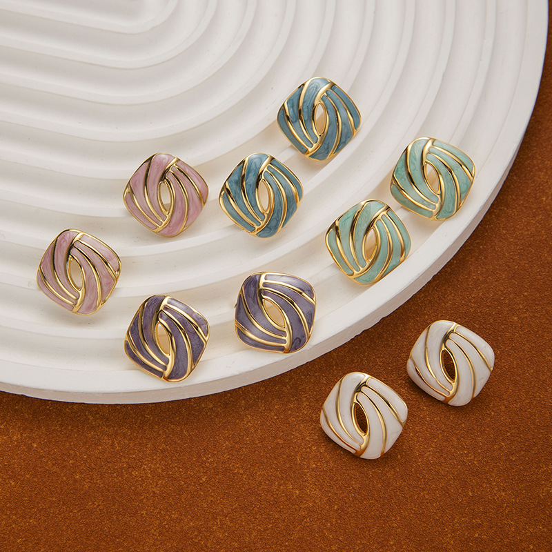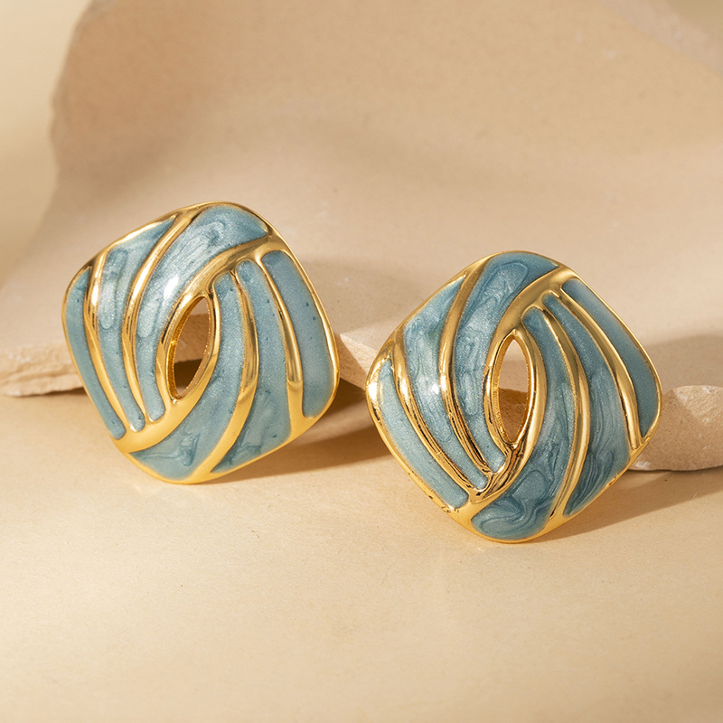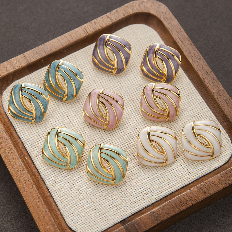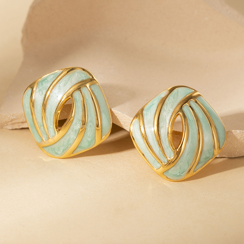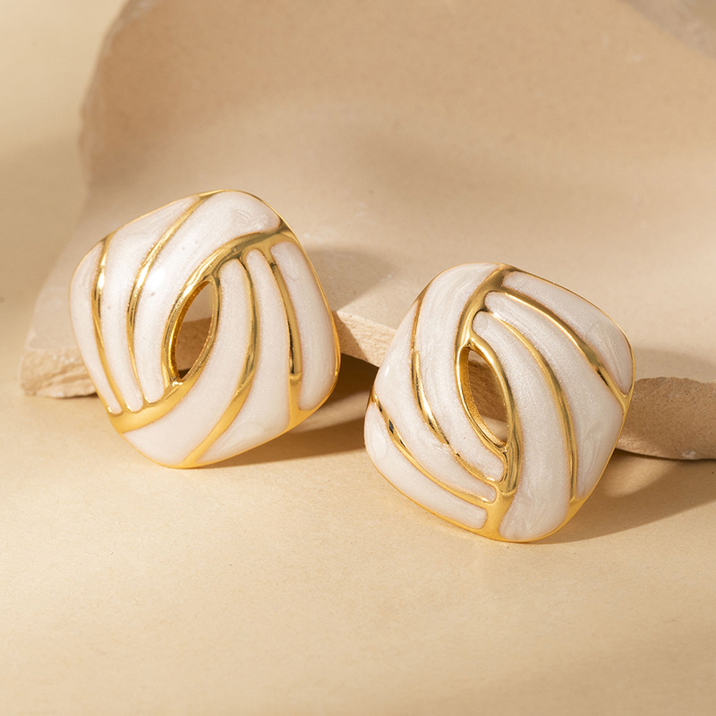 Boucle d'oreille de gaujon en acier inoxydable, Acier inoxydable 304, bouton Forme, Placage de couleur d'or, pour femme & émail & creux, plus de couleurs à choisir, Vendu par paire