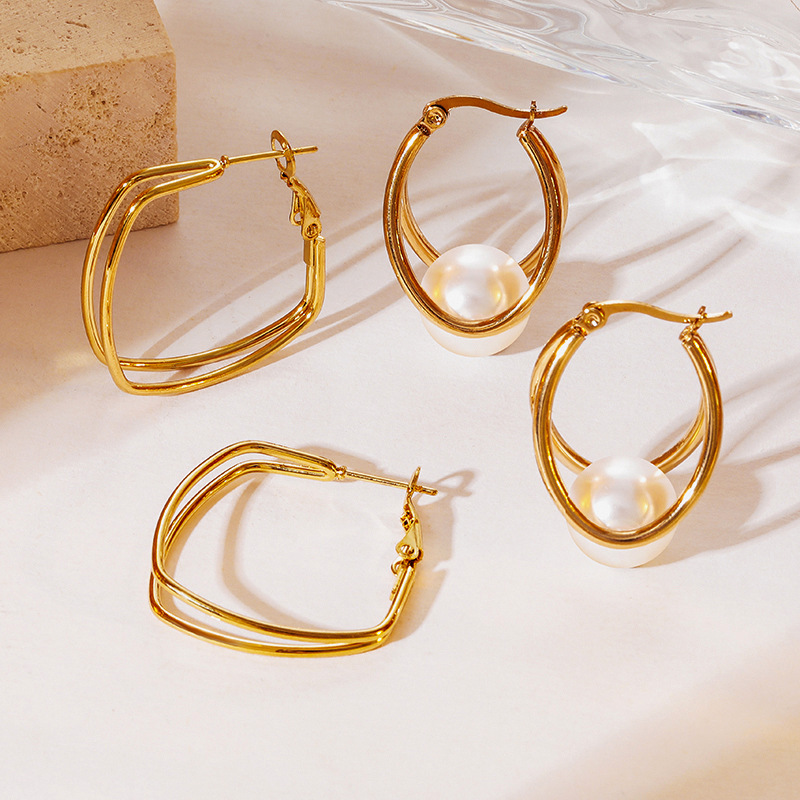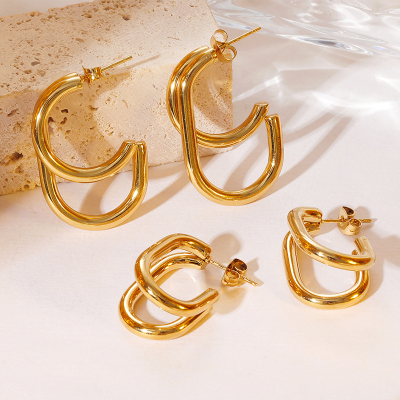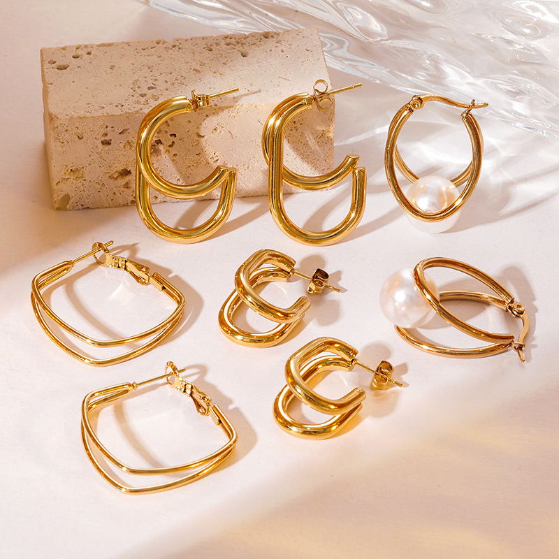 Boucle d'oreille de gaujon en acier inoxydable, Acier inoxydable 304, Plaqué or 18K, styles différents pour le choix & pour femme & creux, Vendu par paire