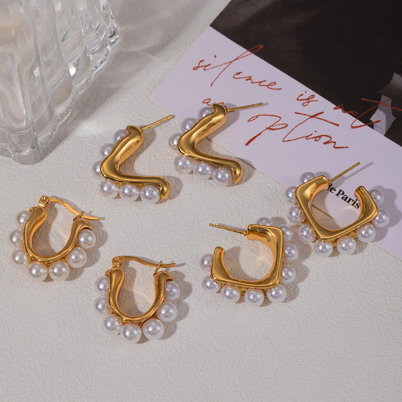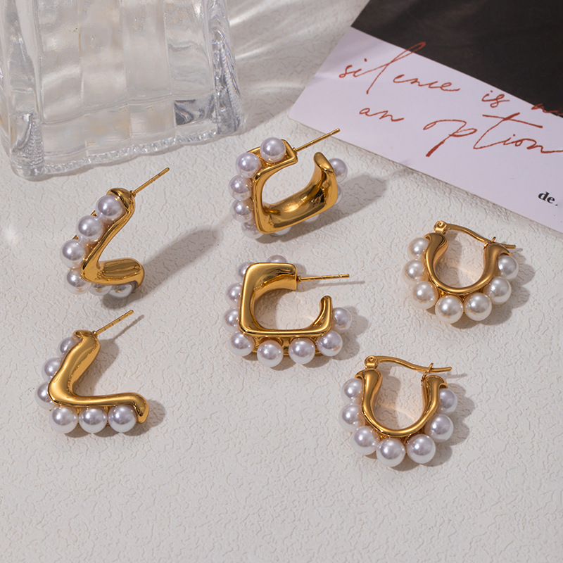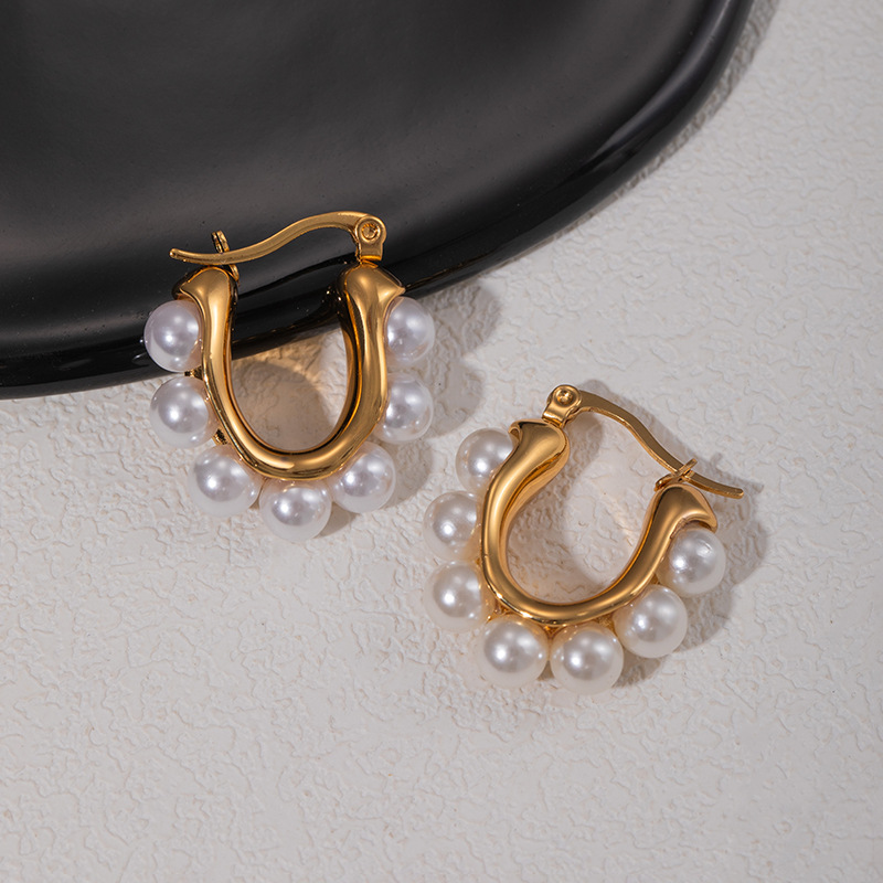 Boucle d'oreille de gaujon en acier inoxydable, Acier inoxydable 304, avec perle de plastique, Placage, bijoux de mode & styles différents pour le choix & pour femme, doré, Vendu par paire