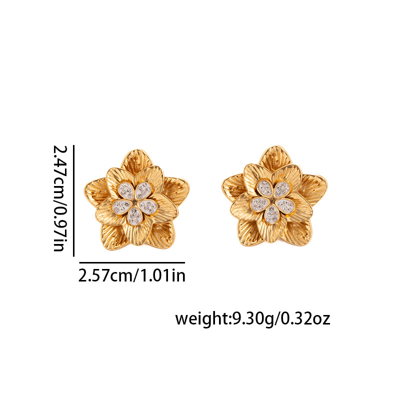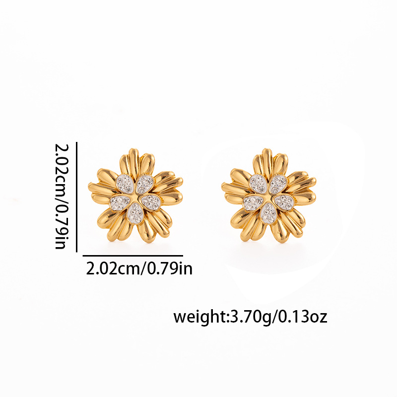 Boucle d'oreille de gaujon en acier inoxydable, Acier inoxydable 304, fleur, Placage, bijoux de mode & pour femme, doré, Vendu par paire