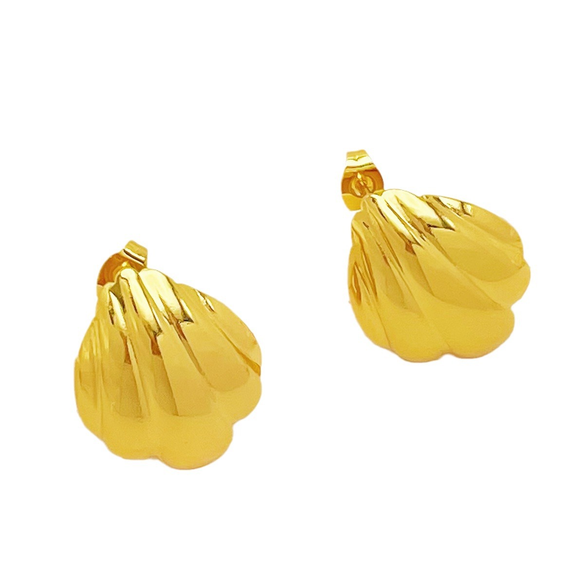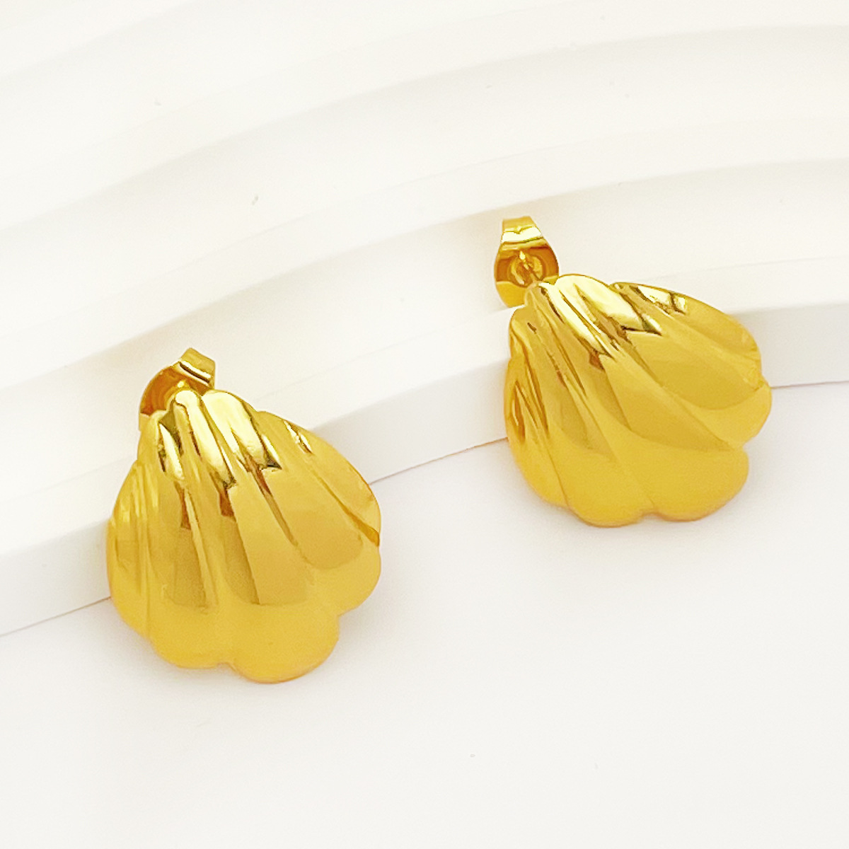 Boucle d'oreille de gaujon en acier inoxydable, Acier inoxydable 304, coquille, Placage, bijoux de mode & pour femme, doré, Vendu par paire