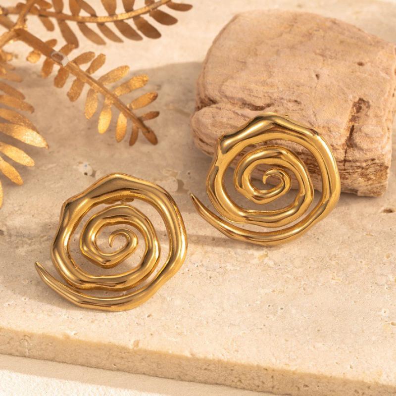 Boucle d'oreille de gaujon en acier inoxydable, Acier inoxydable 304, fleur, Placage, bijoux de mode & pour femme, doré, Vendu par paire