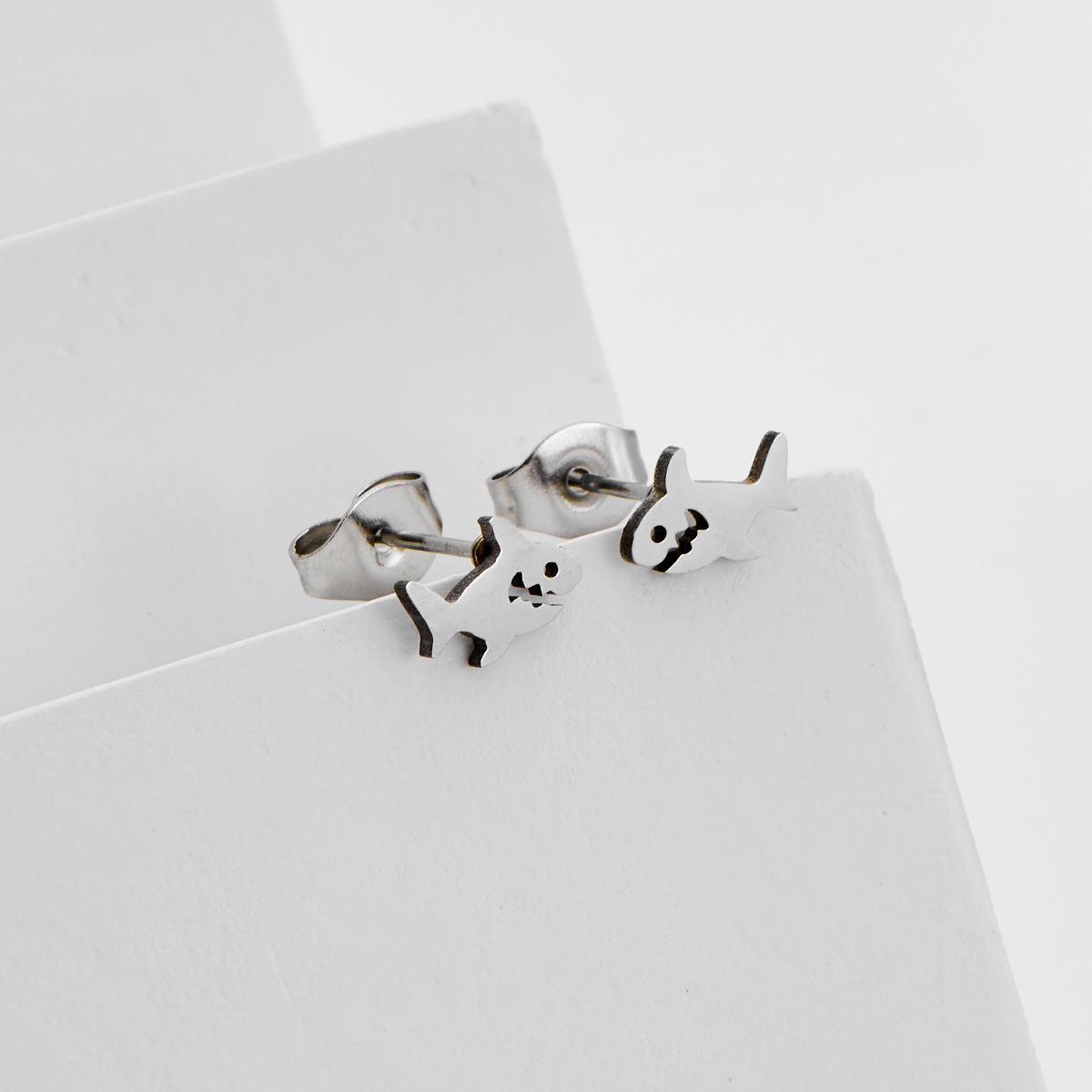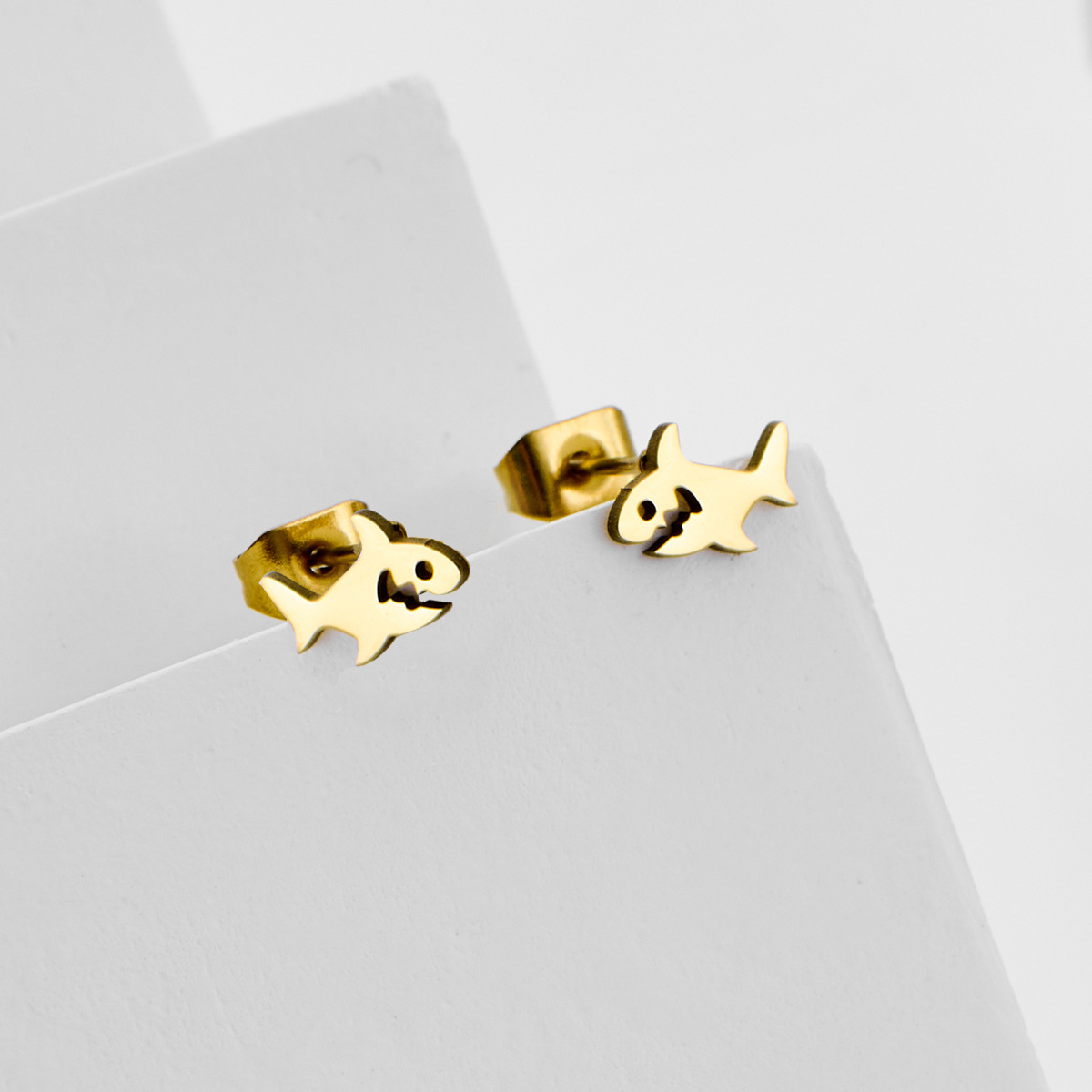 Boucle d'oreille de gaujon en acier inoxydable, Acier inoxydable 304, Requin, Placage, bijoux de mode, plus de couleurs à choisir, 12pairescouple/sac, Vendu par sac