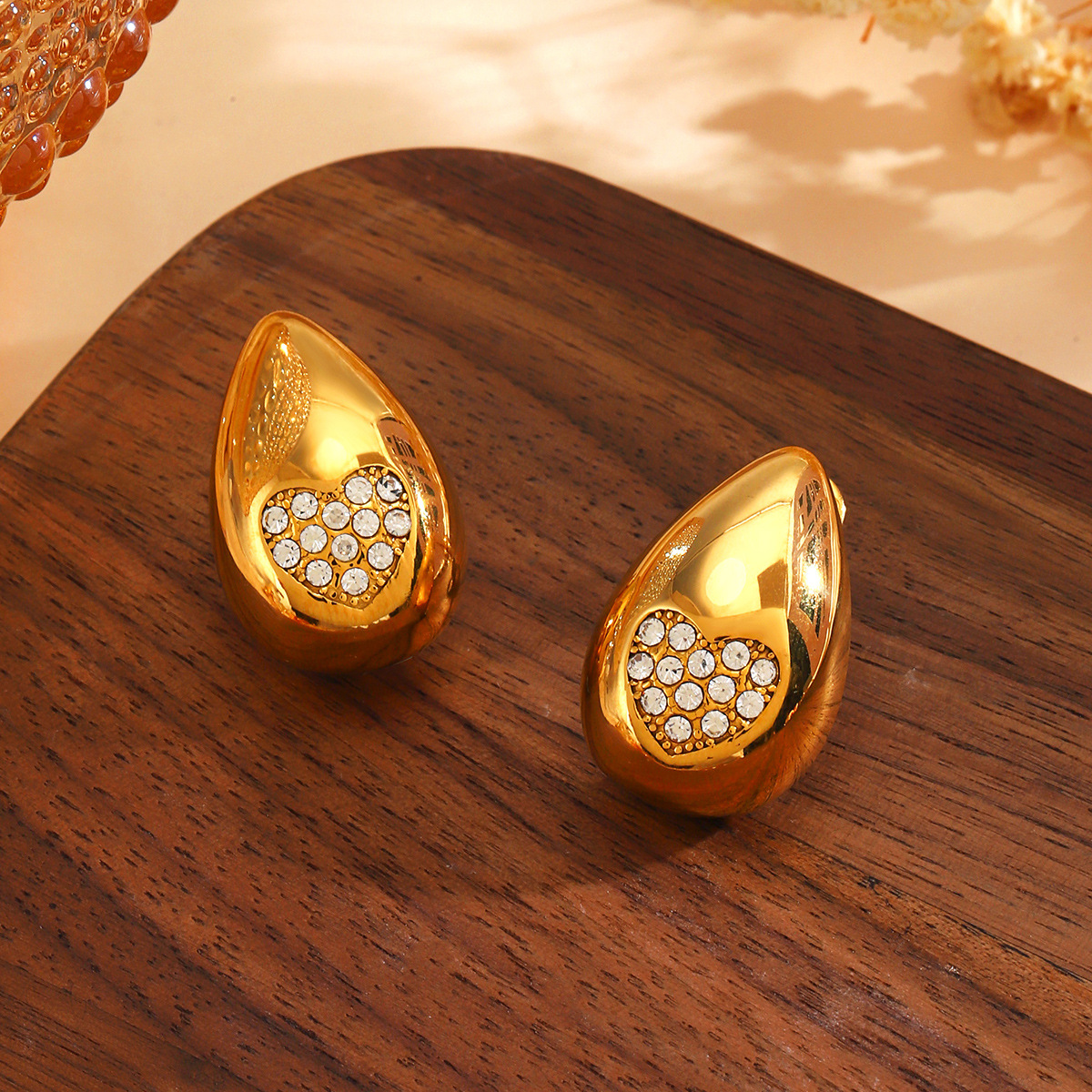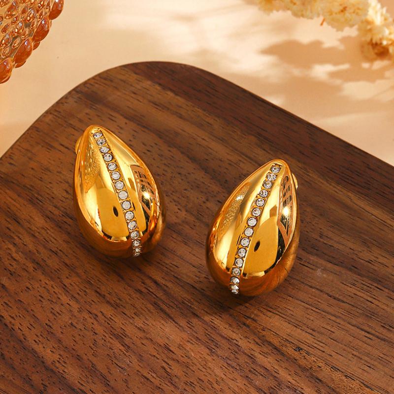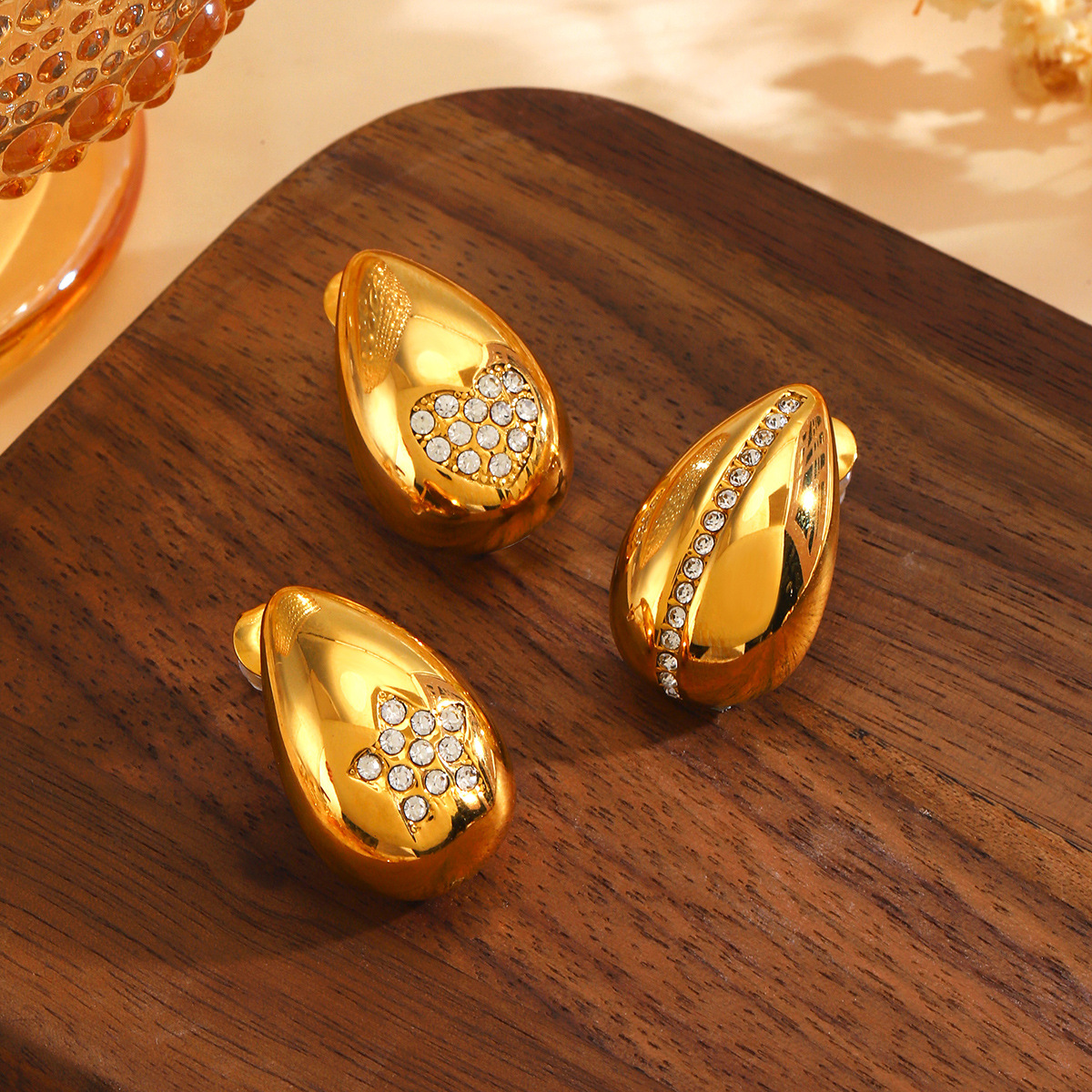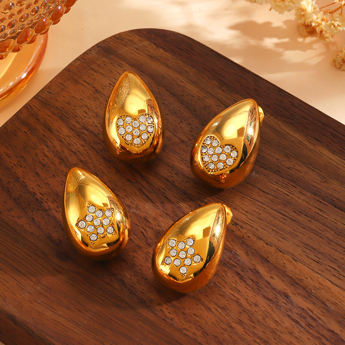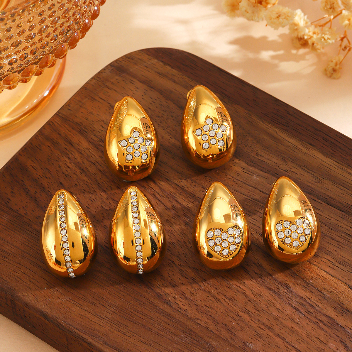 Boucle d'oreille de gaujon en acier inoxydable, Acier inoxydable 304, larme, Placage, modèles différents pour le choix & pavé de micro zircon & pour femme, doré, Vendu par paire