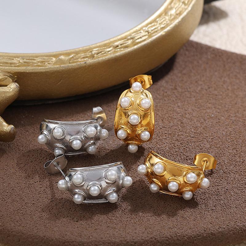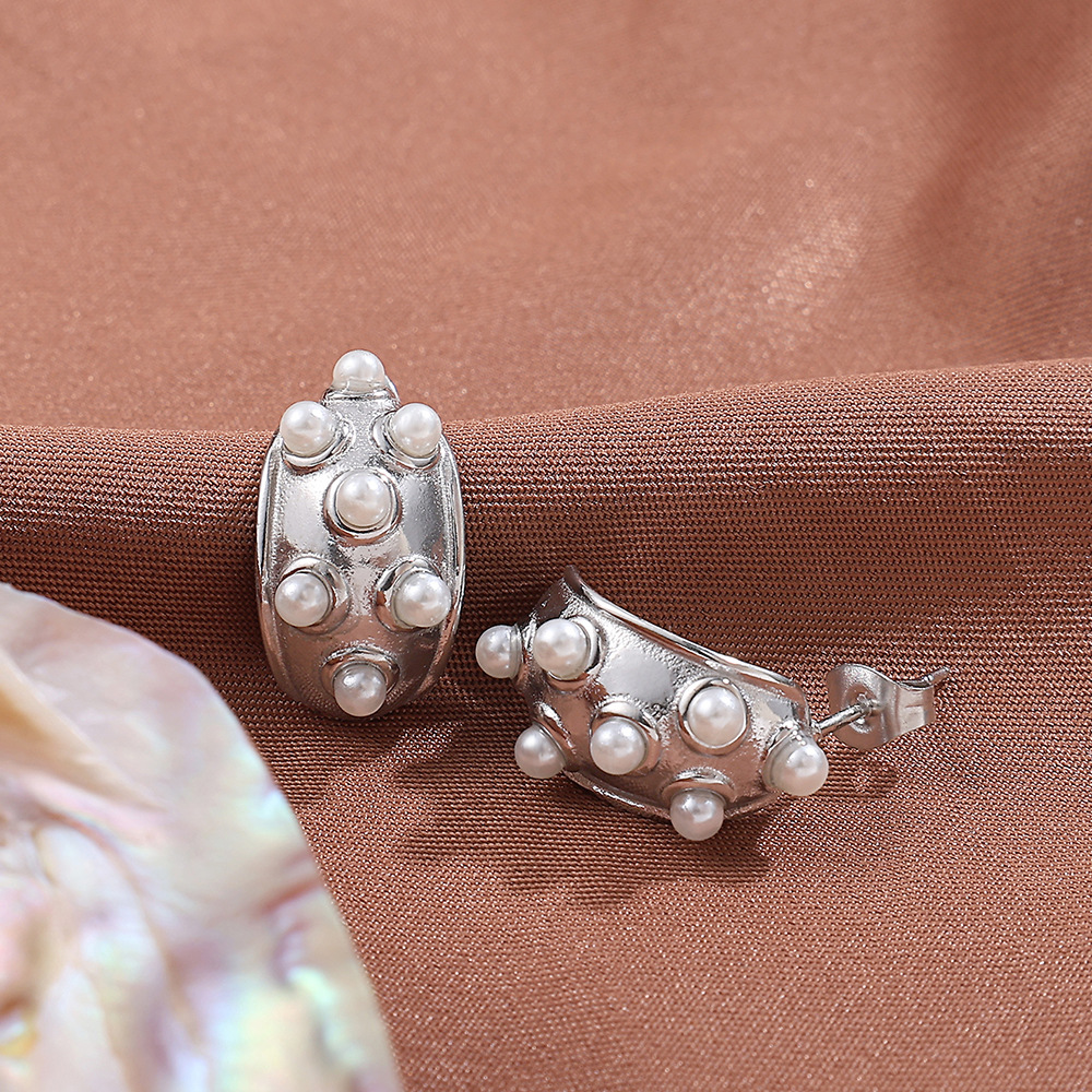 Boucle d'oreille de gaujon en acier inoxydable, Acier inoxydable 304, avec perle de plastique, Placage, bijoux de mode & pour femme, plus de couleurs à choisir, Vendu par paire