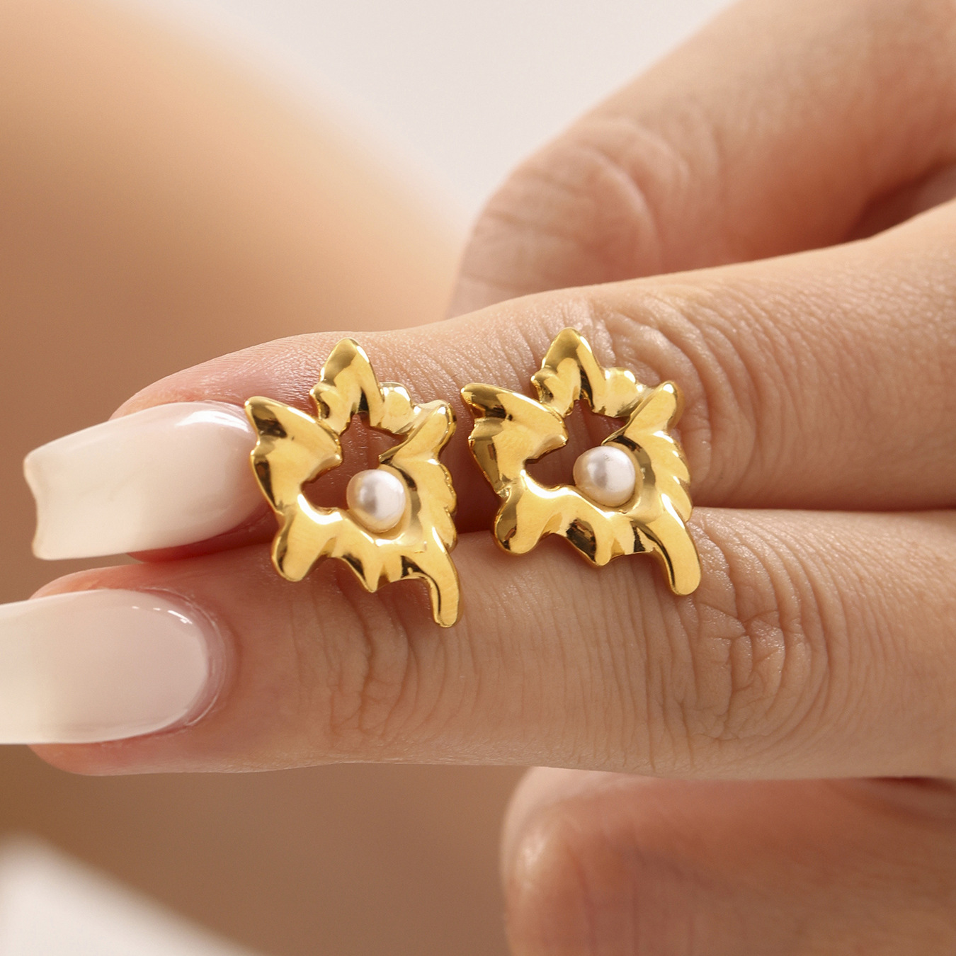 Boucle d'oreille de gaujon en acier inoxydable, Acier inoxydable 304, fleur, Placage, bijoux de mode & pour femme, doré, Vendu par paire