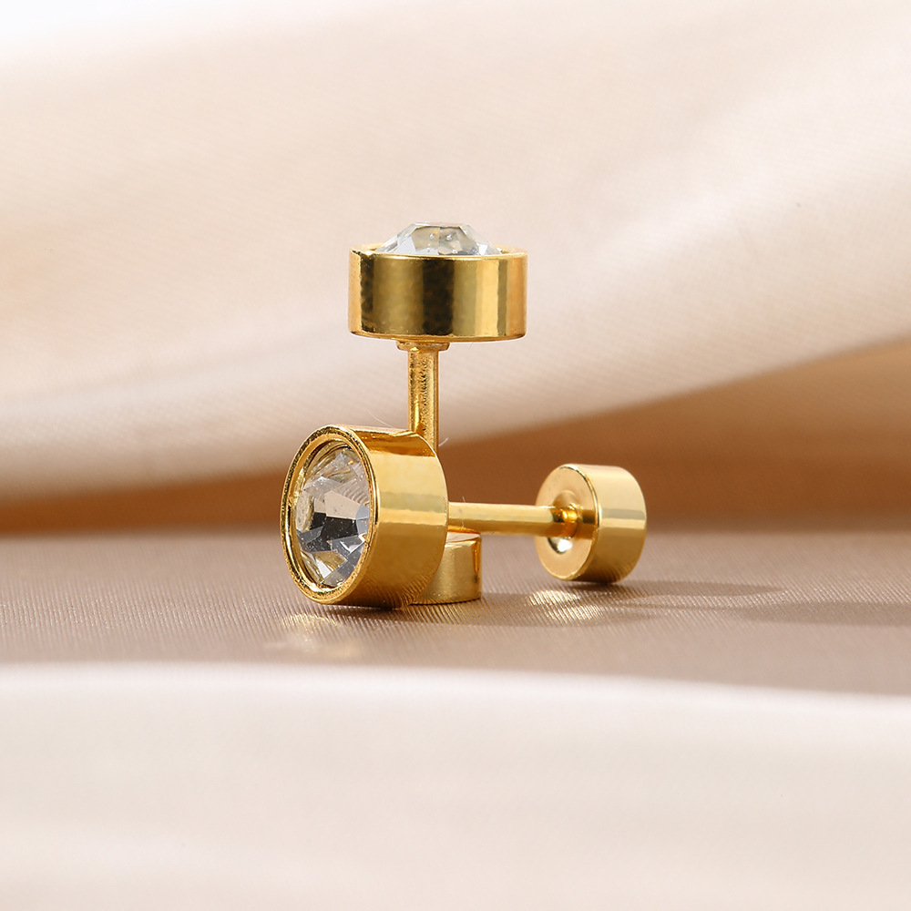 Boucle d'oreille dormeuse en alliage de zinc, Placage de couleur d'or, bijoux de mode & pavé de micro zircon, doré, protéger l'environnement, sans nickel, plomb et cadmium, Vendu par paire
