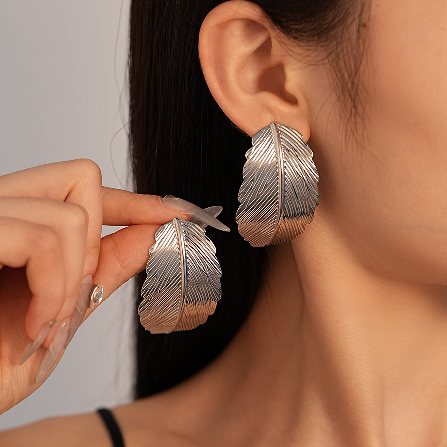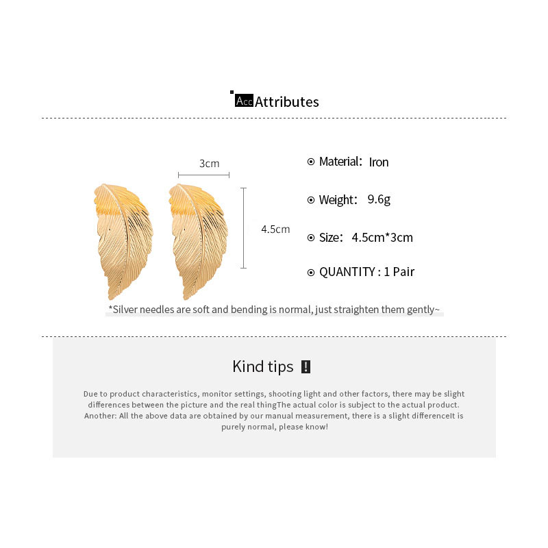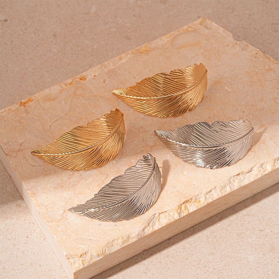 1:Silver needle-gold leaf stud earrings2:Silver needle-silver leaf stud earrings