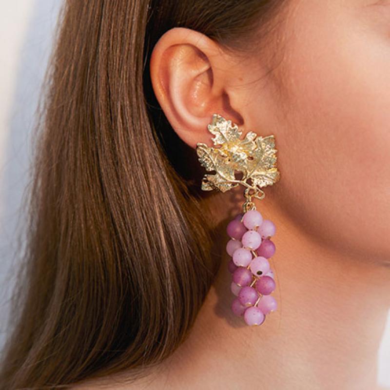 Boucle d'oreille résine, alliage de zinc, avec résine, raisin, Placage, bijoux de mode & pour femme, violet, Vendu par paire