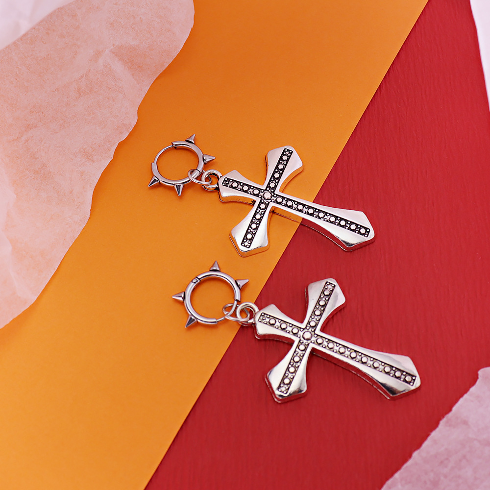 Boucles d'oreilles en alliage de zinc, croix, Placage de couleur d'or, bijoux de mode, plus de couleurs à choisir, Vendu par paire
