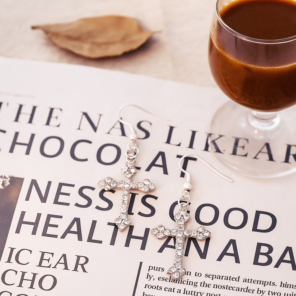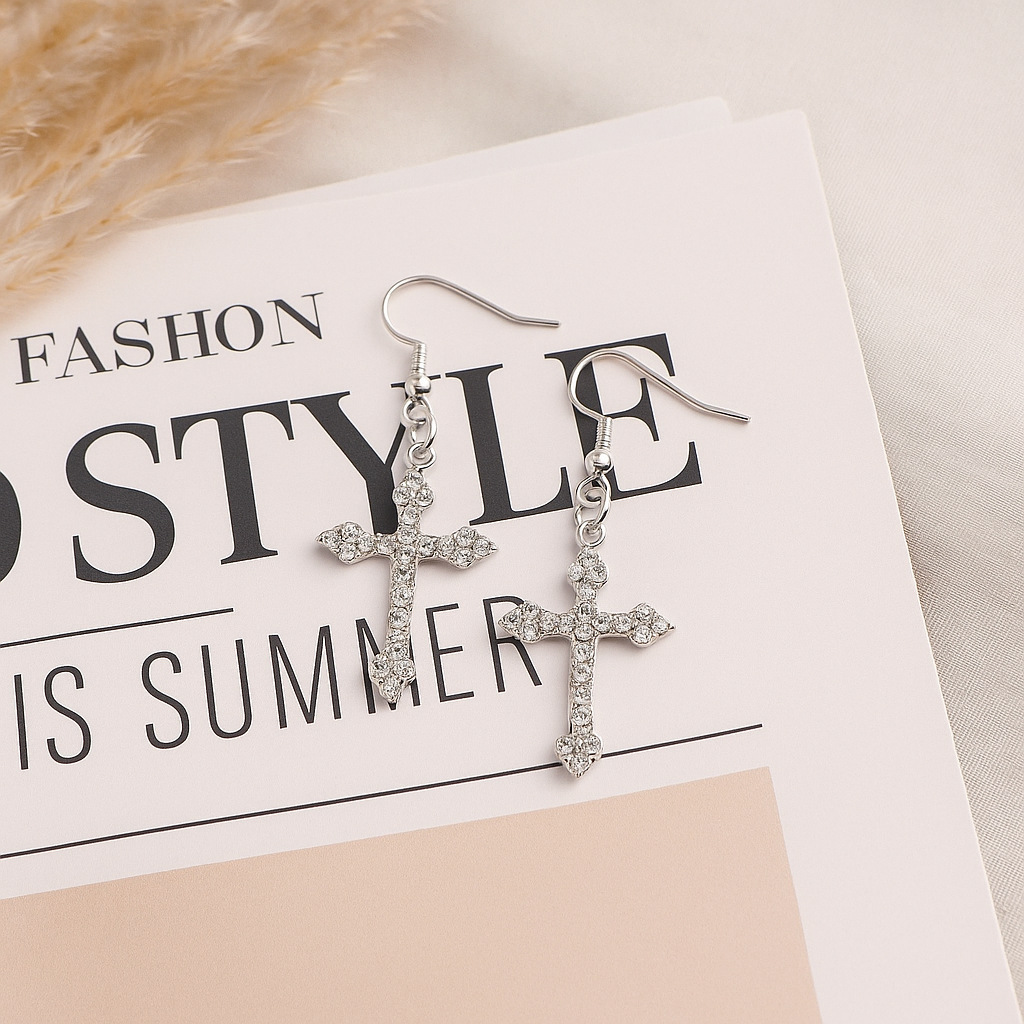 Boucles d'oreilles en alliage de zinc, croix, Placage de couleur d'or, bijoux de mode & avec strass, argent, Vendu par PC