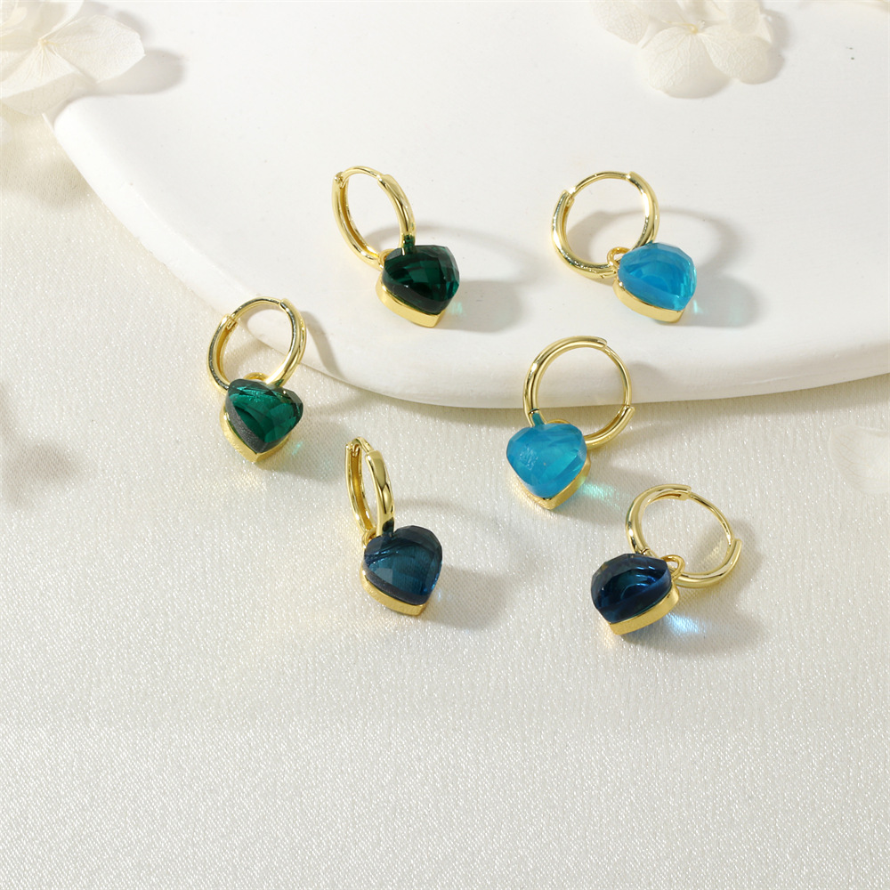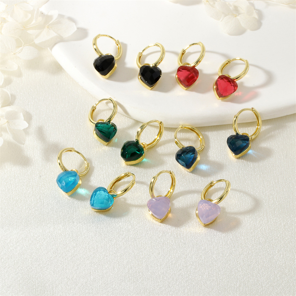 Boucles d'oreilles cristal, laiton, avec cristal, coeur, Placage de couleur d'or, bijoux de mode & pour femme, plus de couleurs à choisir, protéger l'environnement, sans nickel, plomb et cadmium, Vendu par paire