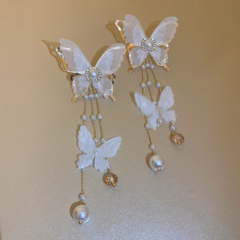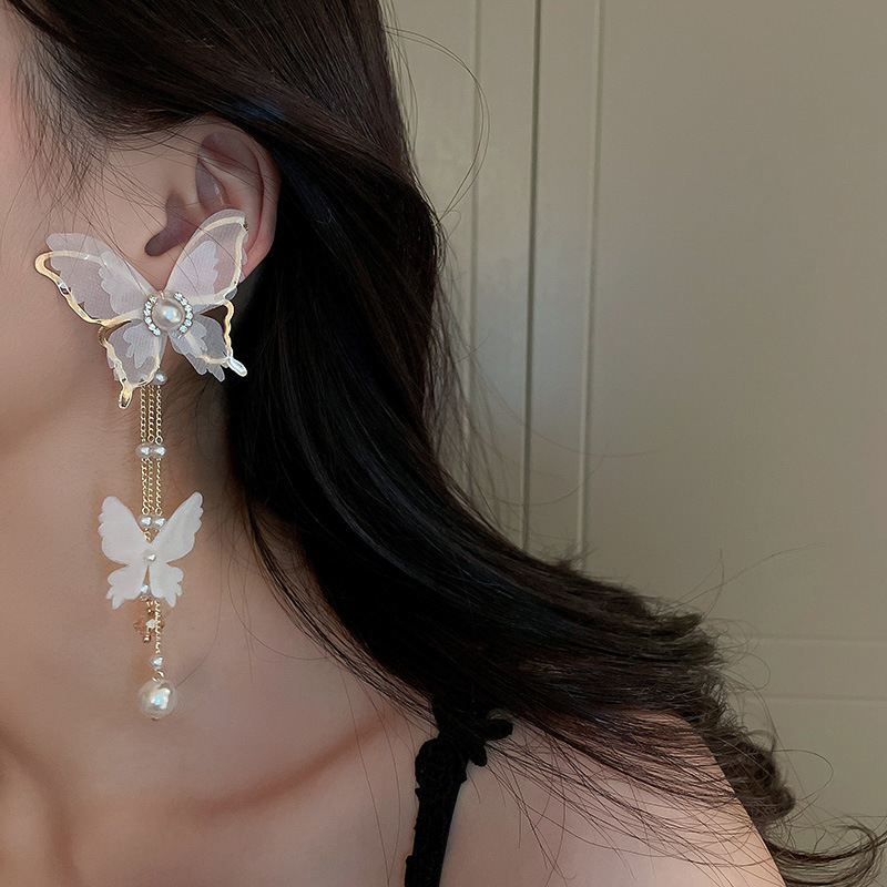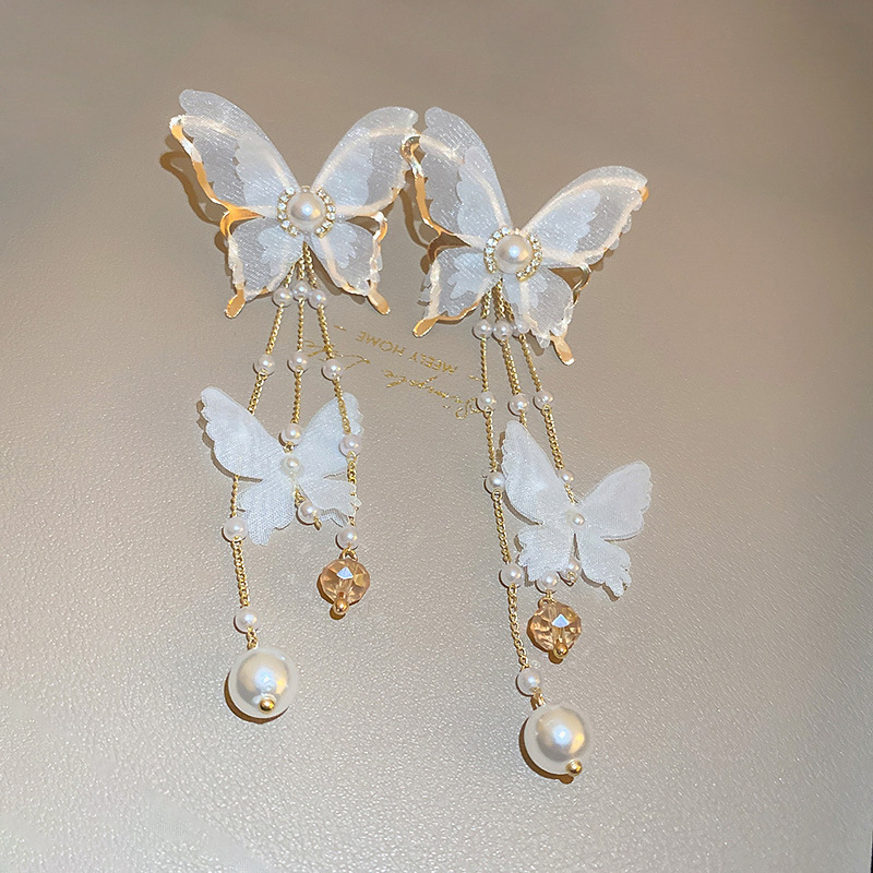 Boucles d'oreilles cristal, alliage de zinc, avec cristal & perle de plastique, bijoux de mode & pour femme & avec strass, blanc, 125x50mm, Vendu par paire