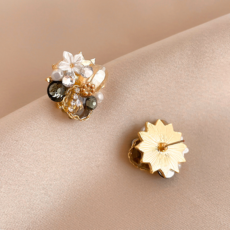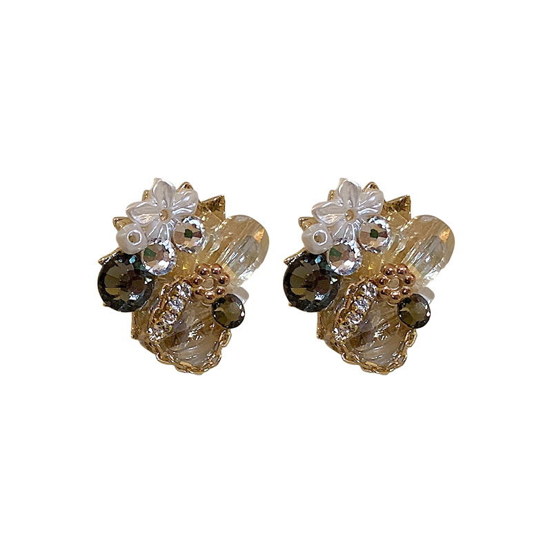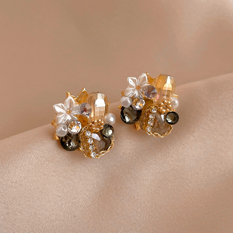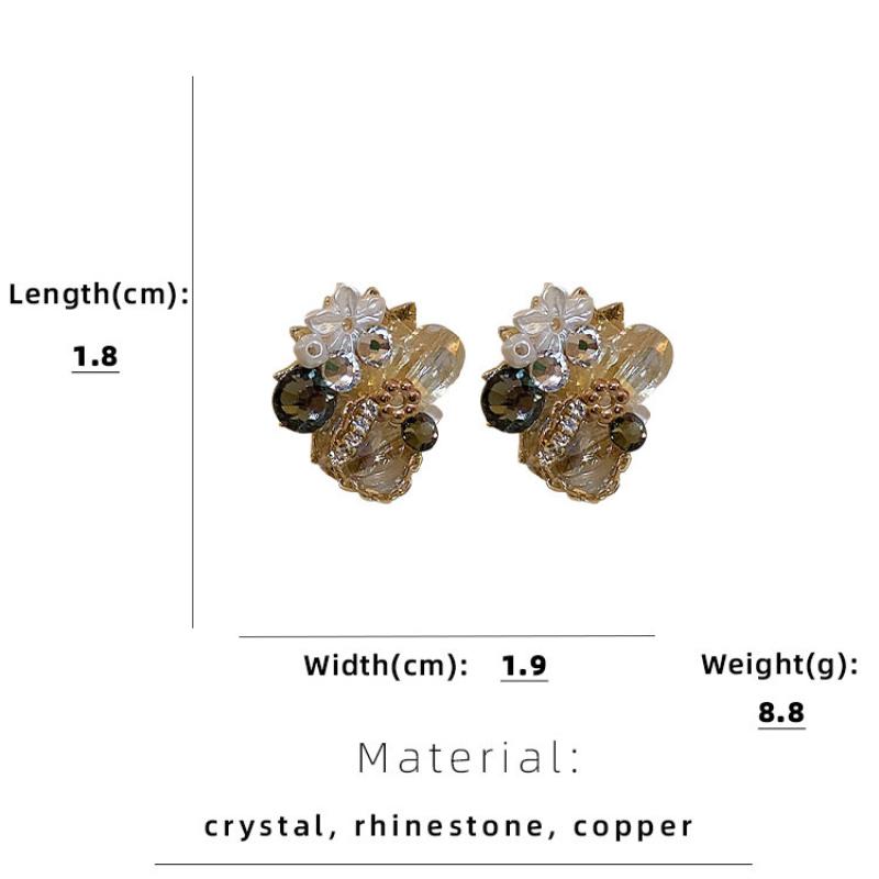 Boucles d'oreilles cristal, laiton, avec cristal, fleur, bijoux de mode & pour femme & avec strass, doré, Vendu par paire