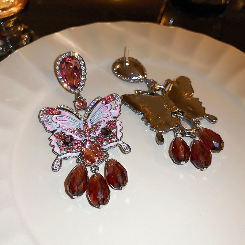 Boucles d'oreilles cristal, alliage de zinc, avec cristal, papillon, bijoux de mode & pour femme & avec strass, rouge foncé, 90x45mm, Vendu par paire