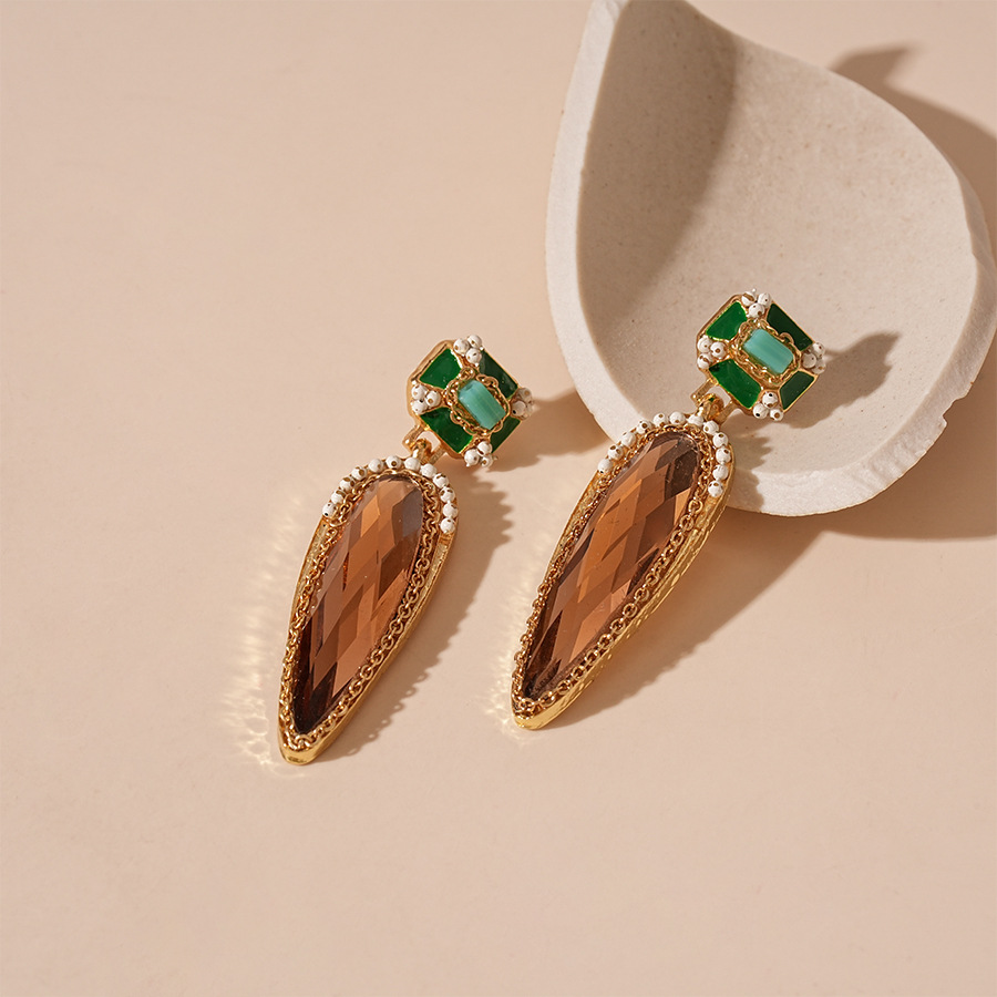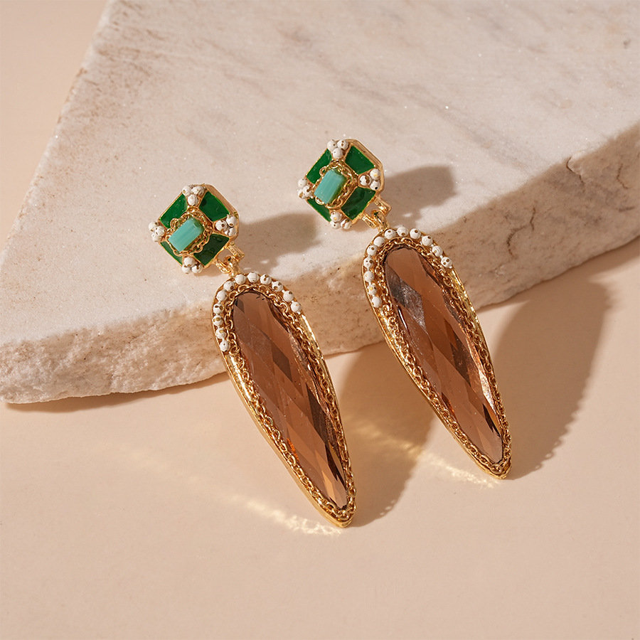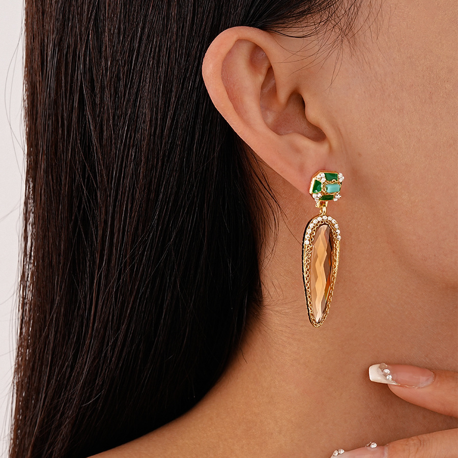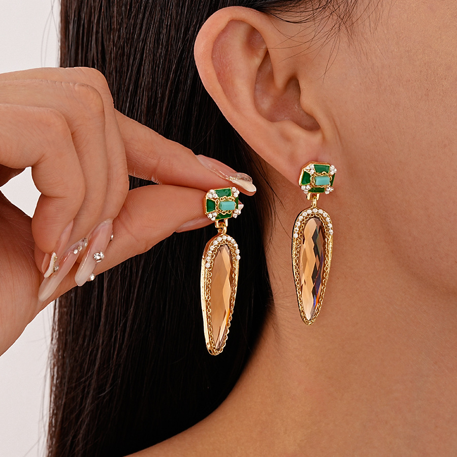 Boucles d'oreilles en alliage de zinc, Placage de couleur d'or, bijoux de mode & avec strass, doré, protéger l'environnement, sans nickel, plomb et cadmium, 50x10mm, Vendu par paire