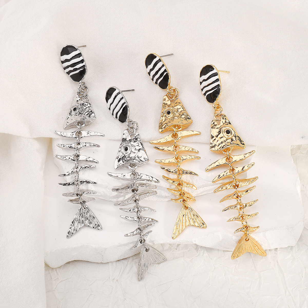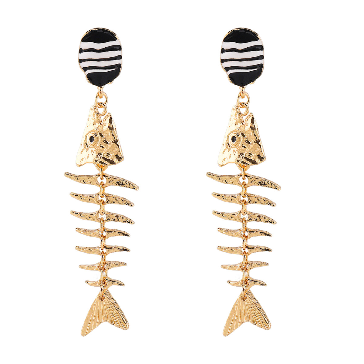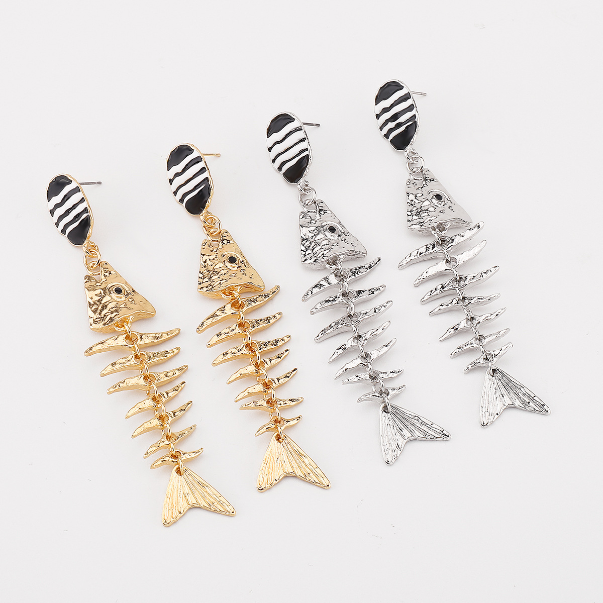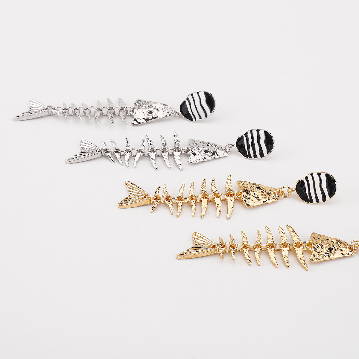 Boucles d'oreilles en alliage de zinc, Squelette de poisson, Placage, pour femme & émail & creux, plus de couleurs à choisir, Vendu par paire