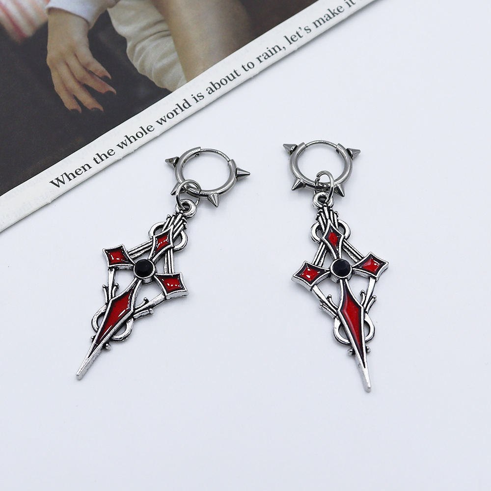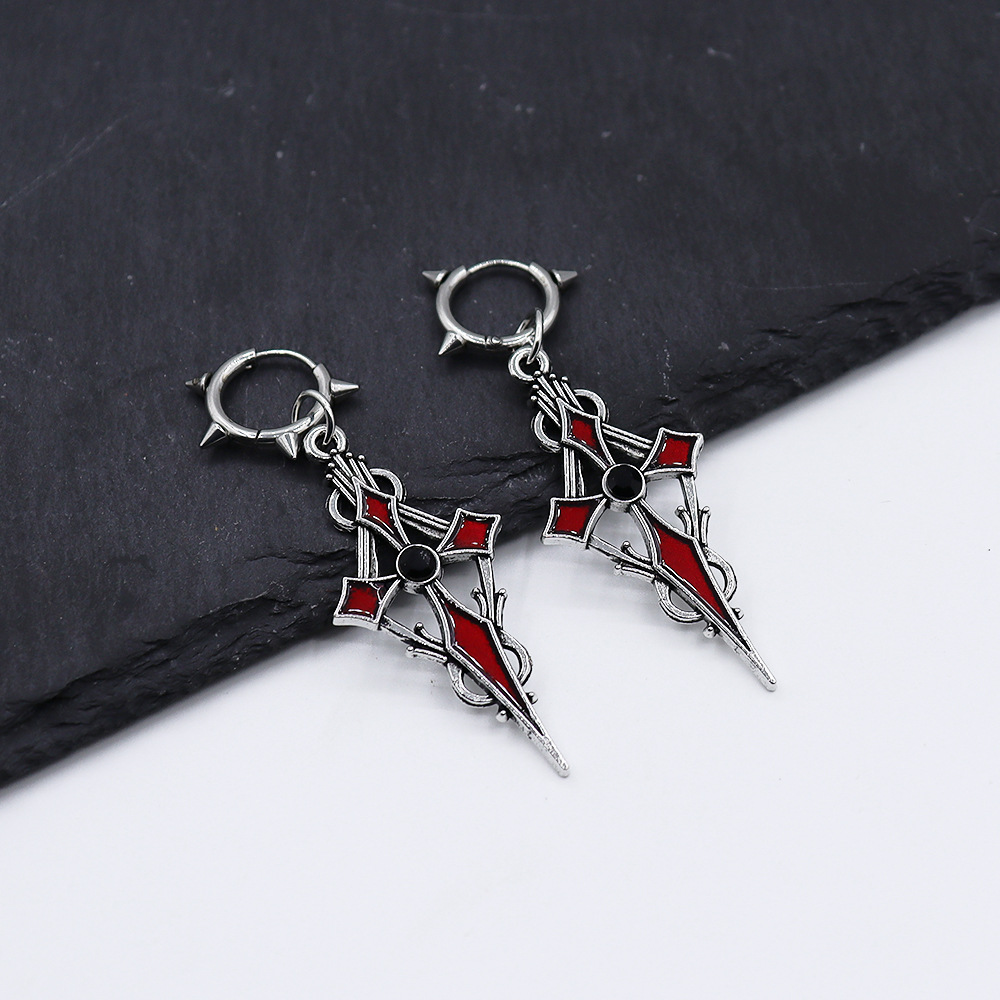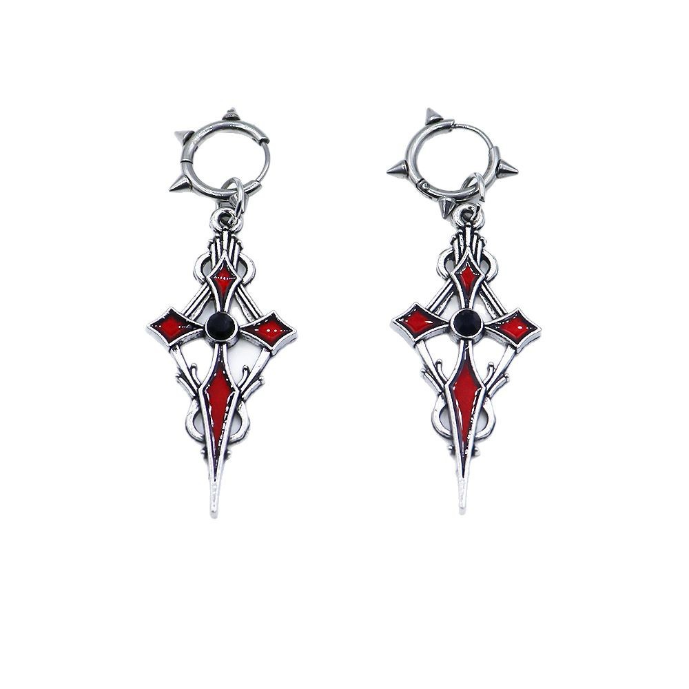 Boucles d'oreilles en alliage de zinc, croix, Placage de couleur d'or, Halloween Design & émail, plus de couleurs à choisir, Vendu par paire