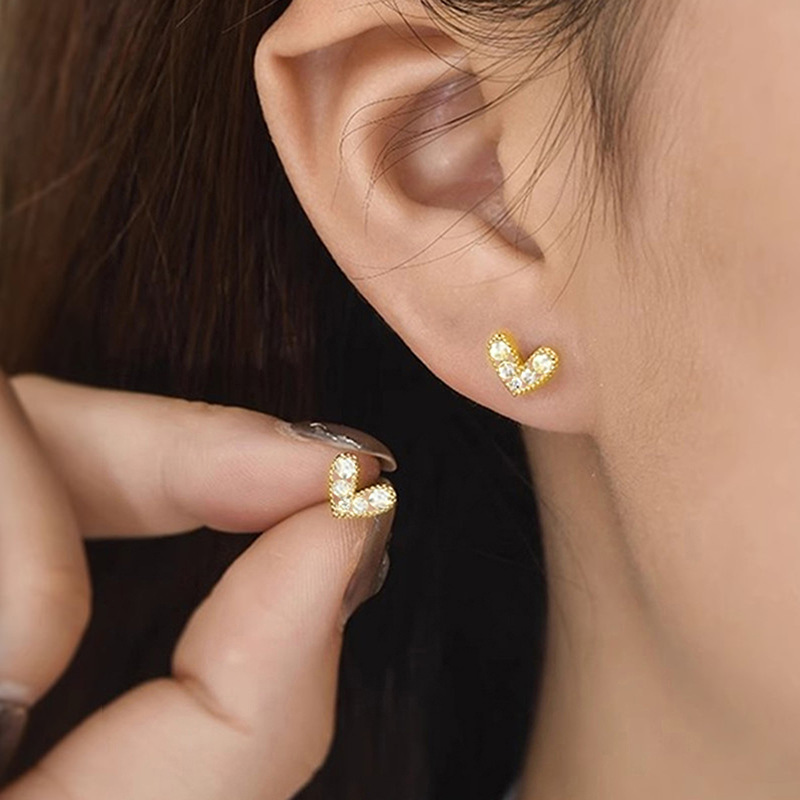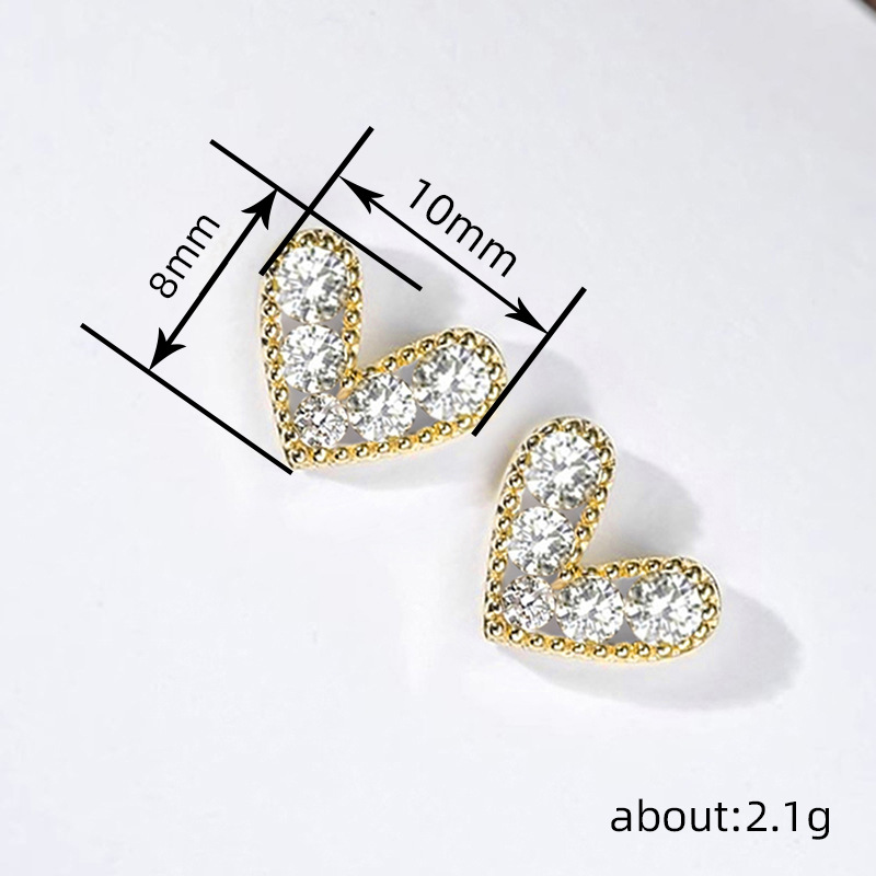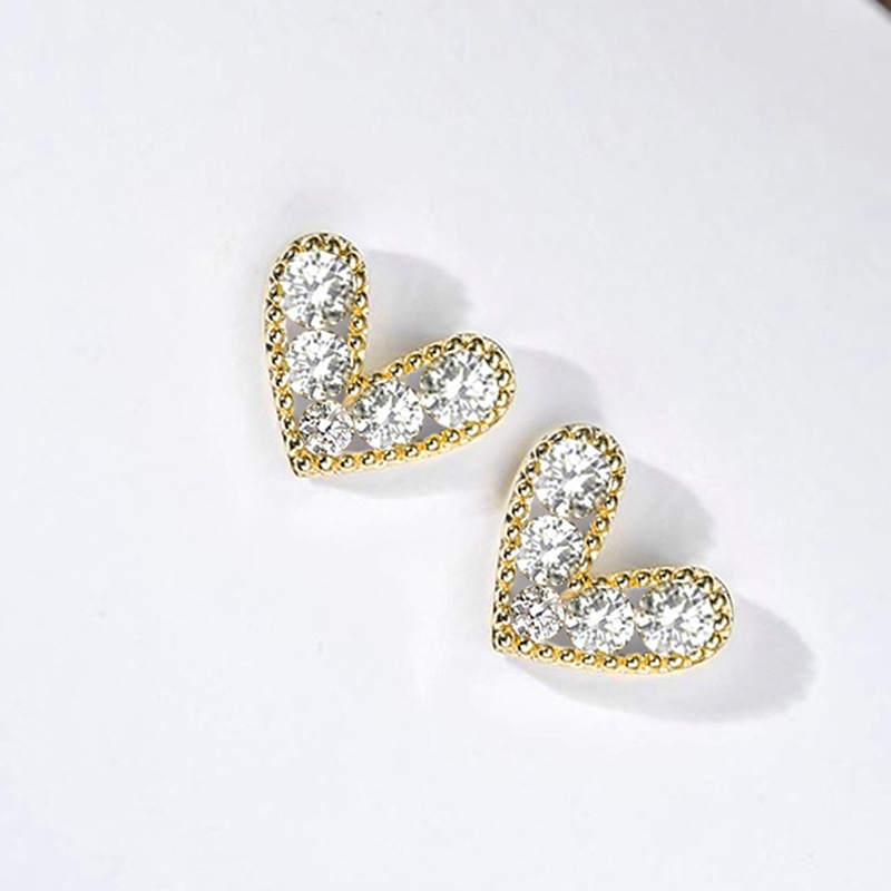 Boucles d'oreilles en laiton zircon cubique pavent, coeur, Placage, pavé de micro zircon & pour femme & creux, Vendu par paire
