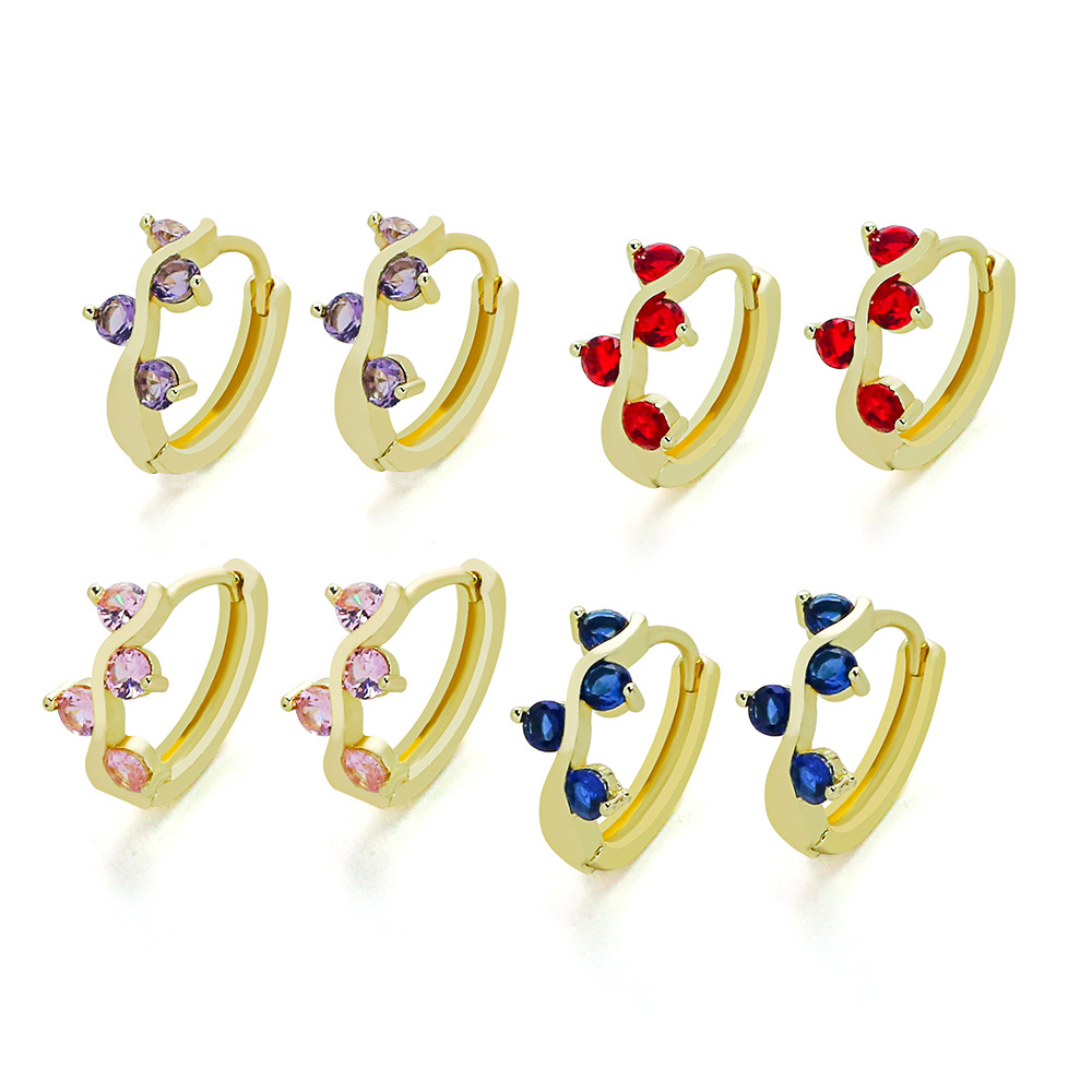 Boucles d'oreilles en laiton zircon cubique pavent, Placage, trois pièces & pour femme, doré, Vendu par fixé